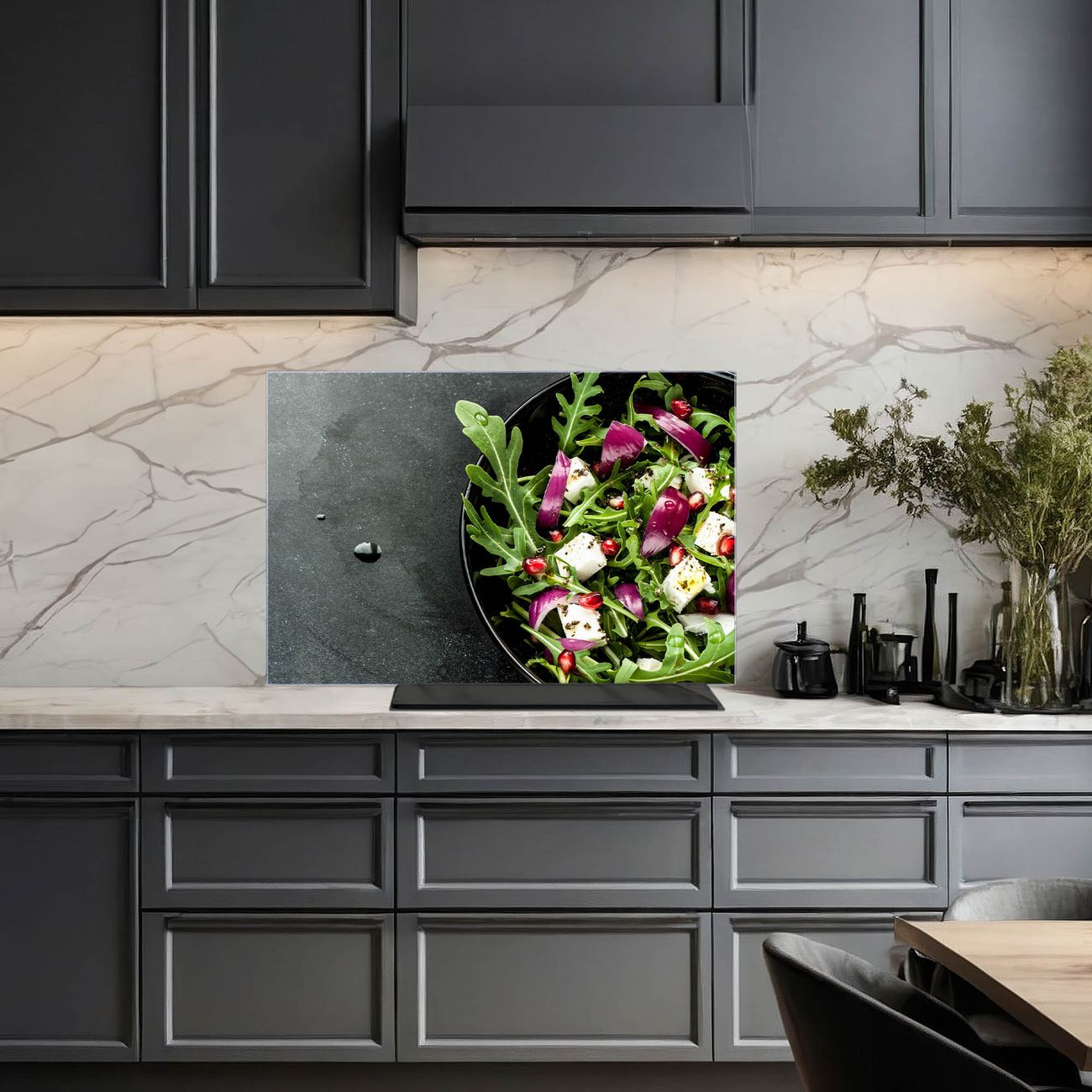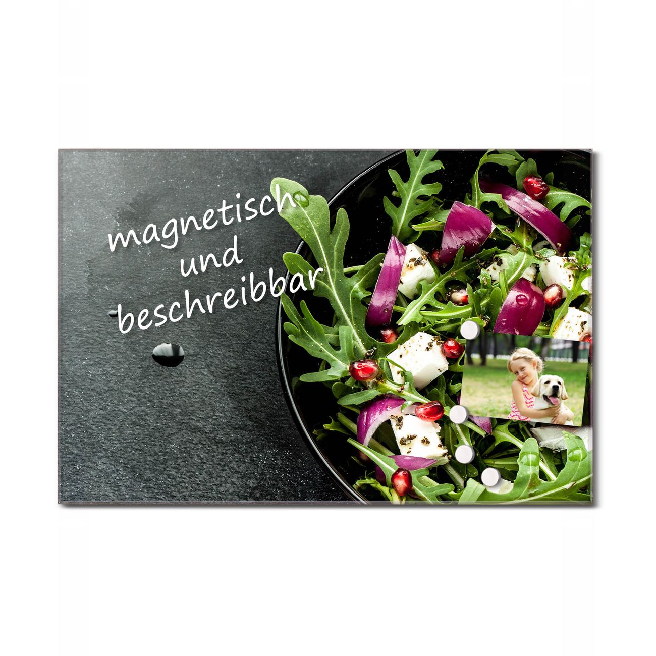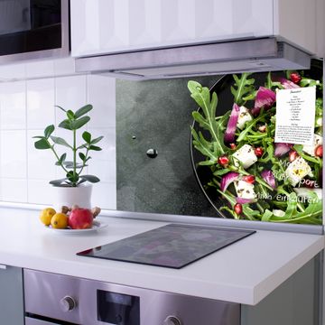 Die banjado Glas Küchenrückwand in verschiedenen Größen mit Motiv Salat schützt Ihre Küchenfliesen vor Fettspritzern oder Wasserflecken. Der Spritzschutz ist gleichzeitig magnetisch und hält Ihre Rezepte oder Einkaufslisten. 4 Neodym-Magnete und 1 Kreidestift liegen bereits bei. Leuchtende Motive und hochwertiges Material machen den Spritzschutz zum Designobjekt. Das dekorative Glasbild gibt Ihrer Küche ein individuelles Erscheinungsbild. Abgerundete Kanten und Sicherheitsglas sorgen für einen sicheren Einsatz.