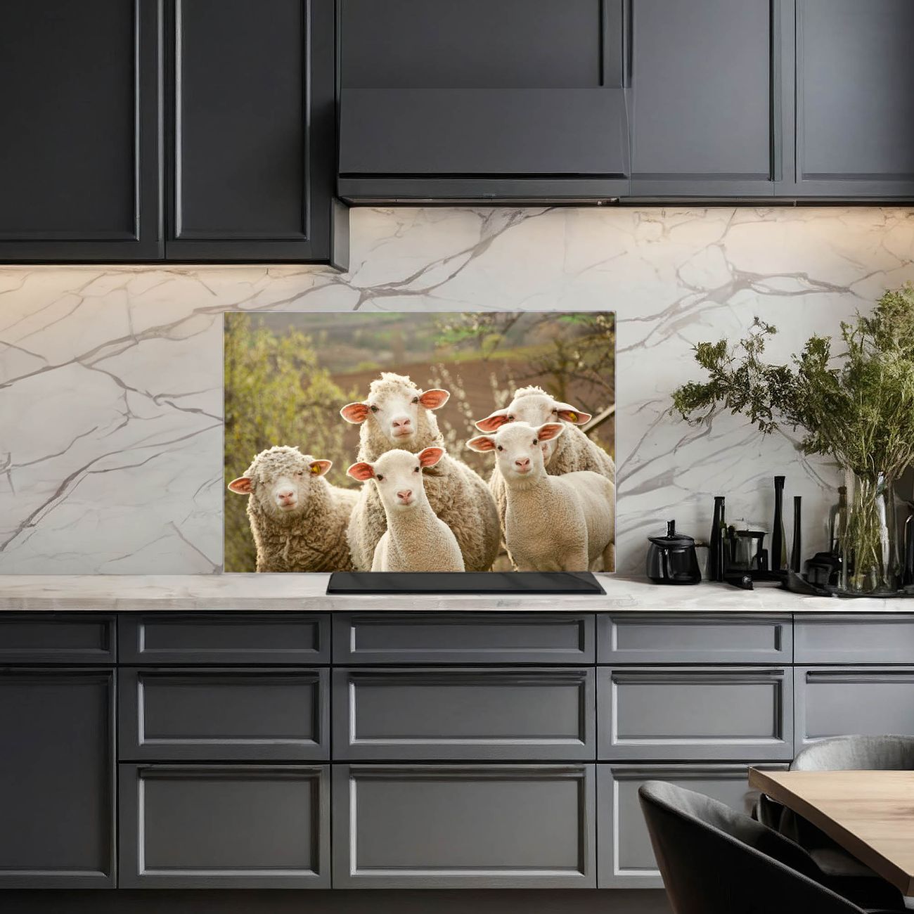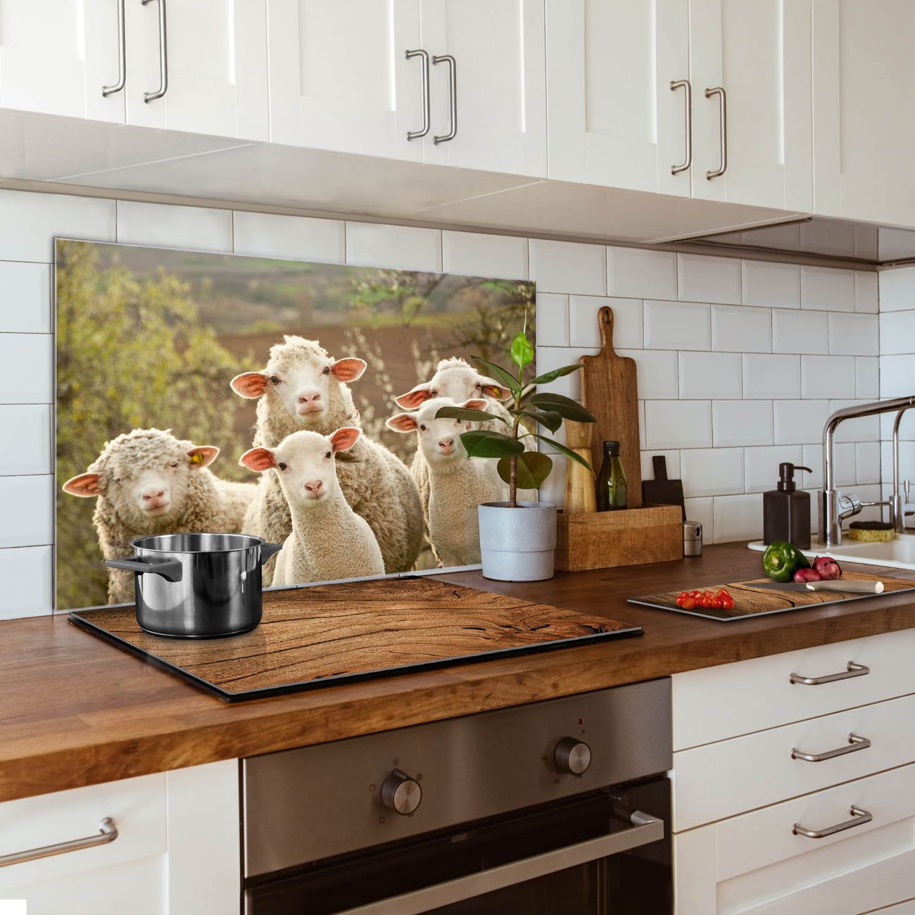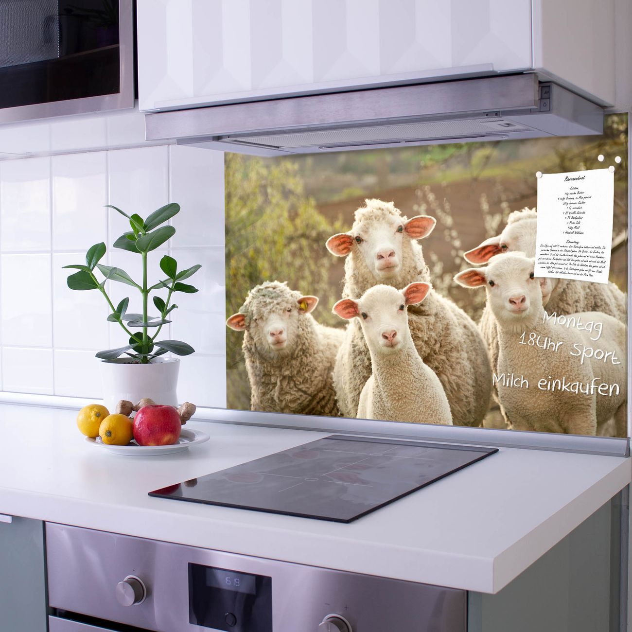 Die banjado Glas Küchenrückwand in verschiedenen Größen mit Motiv Schaffamilie schützt Ihre Küchenfliesen vor Fettspritzern oder Wasserflecken. Der Spritzschutz ist gleichzeitig magnetisch und hält Ihre Rezepte oder Einkaufslisten. 4 Neodym-Magnete und 1 Kreidestift liegen bereits bei. Leuchtende Motive und hochwertiges Material machen den Spritzschutz zum Designobjekt. Das dekorative Glasbild gibt Ihrer Küche ein individuelles Erscheinungsbild. Abgerundete Kanten und Sicherheitsglas sorgen für einen sicheren Einsatz.