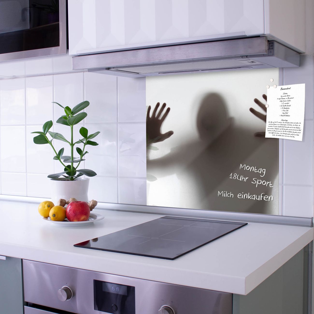 Die Küchenrückwand ist eine elegante Mehrzwecktafel: als Spritzschutz hinter Herd oder Waschbecken, hält Notizen wie ein Memoboard, ist beschreibbar mit Kreidestiften oder Whiteboard-Markern, sieht umwerfend als Glasbild aus. Sie besteht aus gehärtetem Glas, die Rückwand aus einem magnetischen Stahlblech. Durch die superflache Bauweise haben Sie die Wahl aus einer Vielzahl von Befestigungsmöglichkeiten. Sie können die Küchenrückwand mit einem Montagekleber superflach an die Wand kleben oder Sie wählen eines unserer passenden Befestigungssets, welches eine optimale Montage garantiert. Die Küchenrückwand besteht aus zertifiziertem Sicherheitsglas. Durch die mitgelieferten 4 Neodym-Magnete ist Ihre Glas Magnettafel sofort einsatzbereit.