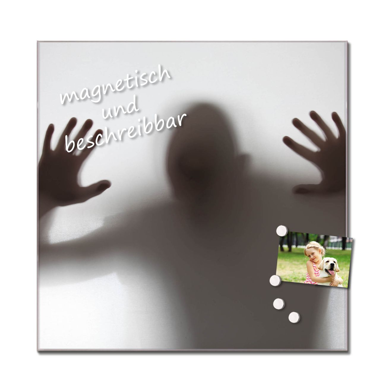 Bitte beachten Sie, dass ausschließlich spezielle Magnete an der Glastafel haften! Wir empfehlen banjado Neodym Magnete, diese sind durch uns auf Wirksamkeit geprüft.