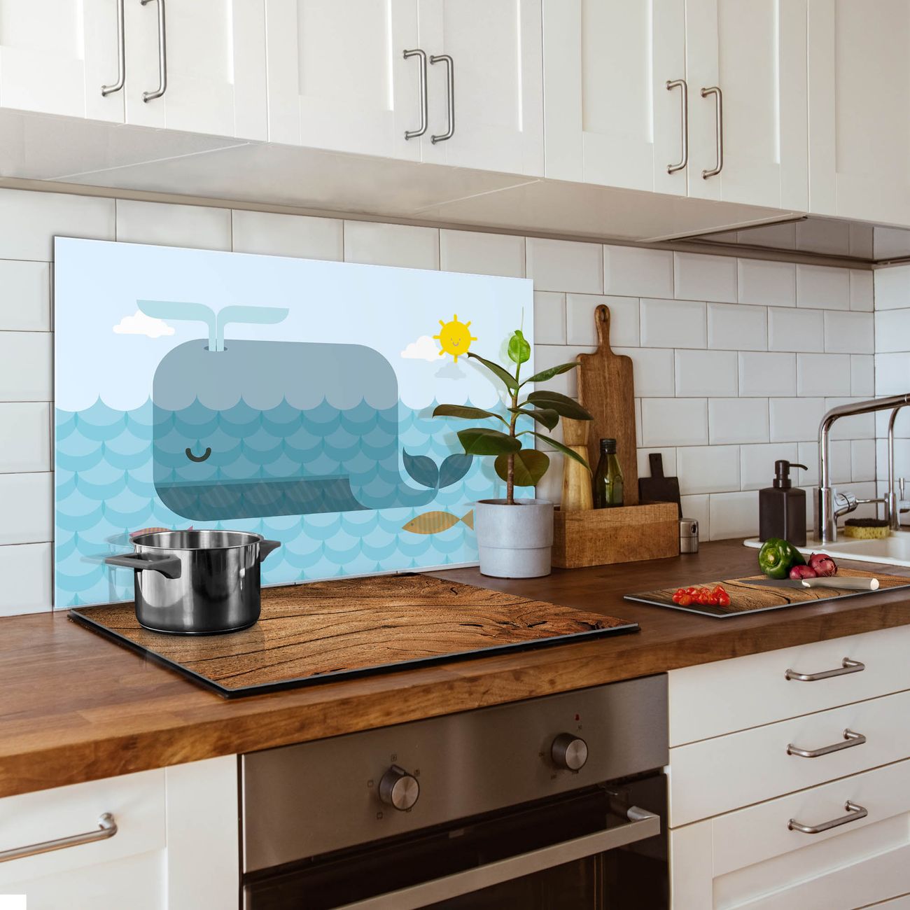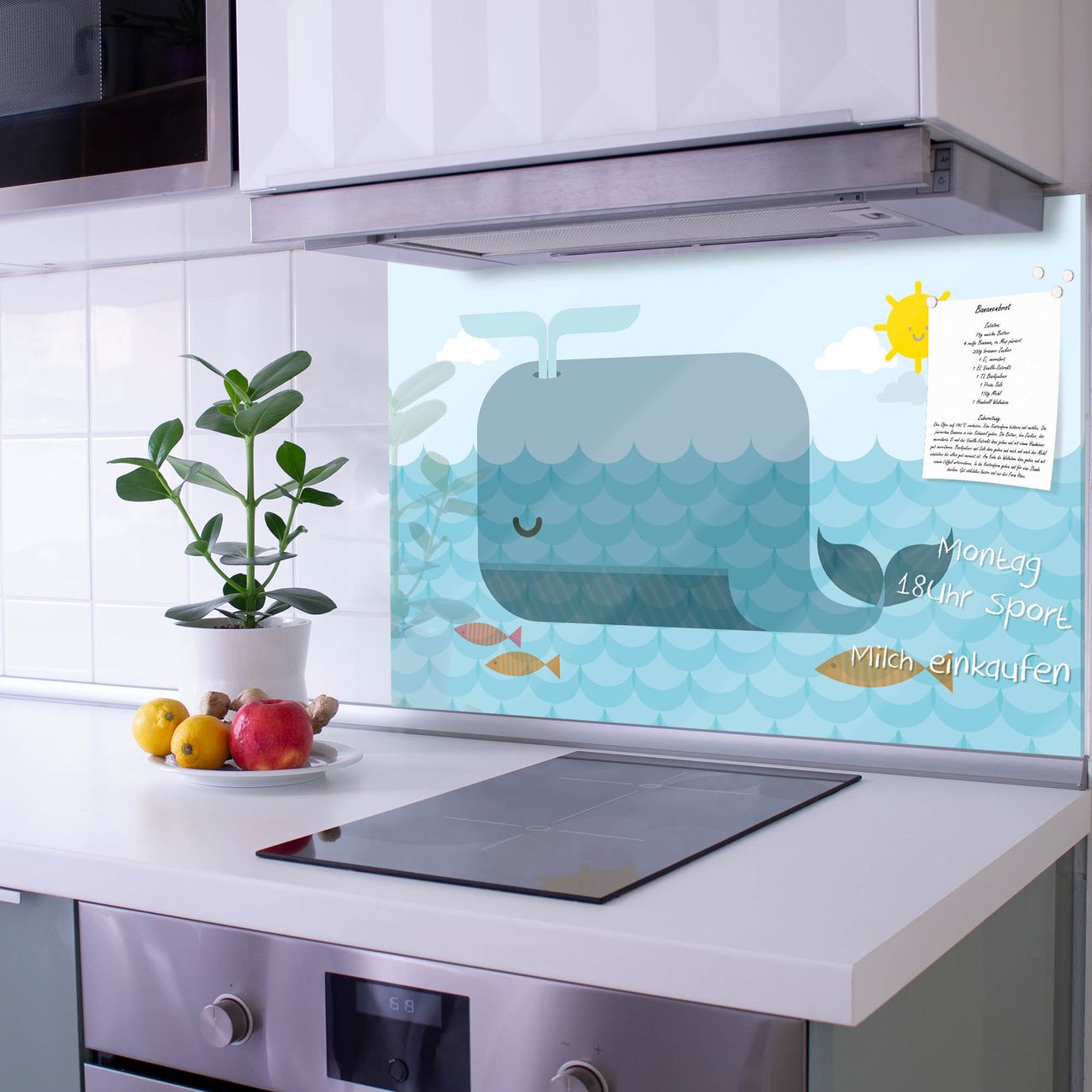 Die banjado Glas Küchenrückwand in verschiedenen Größen mit Motiv Schlafender Wal schützt Ihre Küchenfliesen vor Fettspritzern oder Wasserflecken. Der Spritzschutz ist gleichzeitig magnetisch und hält Ihre Rezepte oder Einkaufslisten. 4 Neodym-Magnete und 1 Kreidestift liegen bereits bei. Leuchtende Motive und hochwertiges Material machen den Spritzschutz zum Designobjekt. Das dekorative Glasbild gibt Ihrer Küche ein individuelles Erscheinungsbild. Abgerundete Kanten und Sicherheitsglas sorgen für einen sicheren Einsatz.