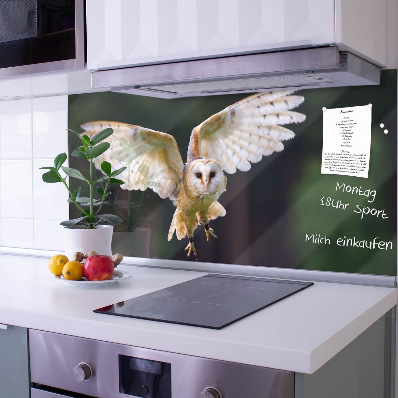 Die banjado Glas Küchenrückwand in verschiedenen Größen mit Motiv Schleiereule schützt Ihre Küchenfliesen vor Fettspritzern oder Wasserflecken. Der Spritzschutz ist gleichzeitig magnetisch und hält Ihre Rezepte oder Einkaufslisten. 4 Neodym-Magnete und 1 Kreidestift liegen bereits bei. Leuchtende Motive und hochwertiges Material machen den Spritzschutz zum Designobjekt. Das dekorative Glasbild gibt Ihrer Küche ein individuelles Erscheinungsbild. Abgerundete Kanten und Sicherheitsglas sorgen für einen sicheren Einsatz.