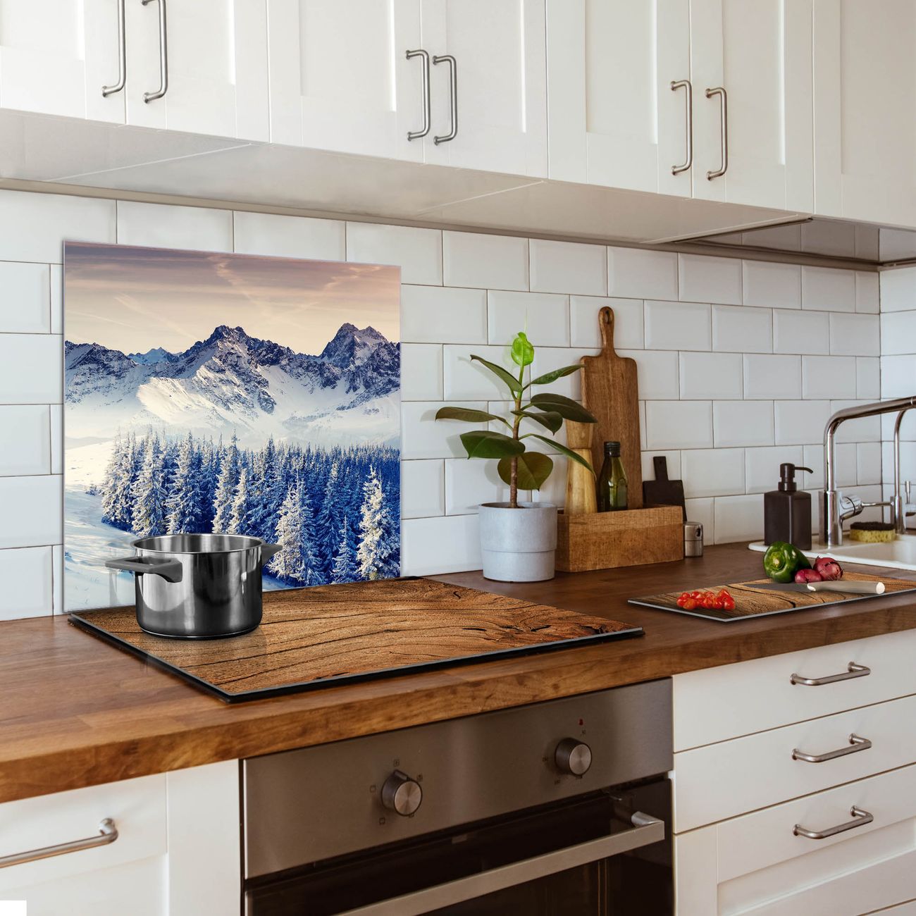 Die banjado Glas Küchenrückwand in verschiedenen Größen mit Motiv Schneebedeckte Berge schützt Ihre Küchenfliesen vor Fettspritzern oder Wasserflecken. Der Spritzschutz ist gleichzeitig magnetisch und hält Ihre Rezepte oder Einkaufslisten. 4 Neodym-Magnete und 1 Kreidestift liegen bereits bei. Leuchtende Motive und hochwertiges Material machen den Spritzschutz zum Designobjekt. Das dekorative Glasbild gibt Ihrer Küche ein individuelles Erscheinungsbild. Abgerundete Kanten und Sicherheitsglas sorgen für einen sicheren Einsatz.