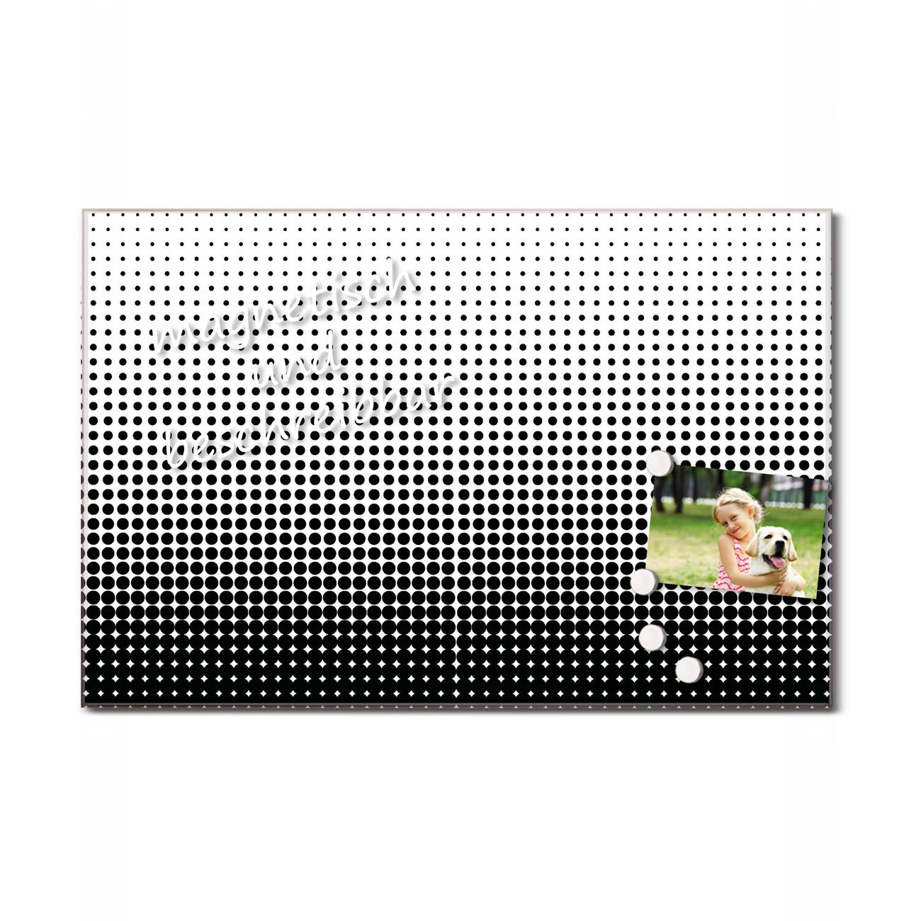 Bitte beachten Sie, dass ausschließlich spezielle Magnete an der Glastafel haften! Wir empfehlen banjado Neodym Magnete, diese sind durch uns auf Wirksamkeit geprüft.