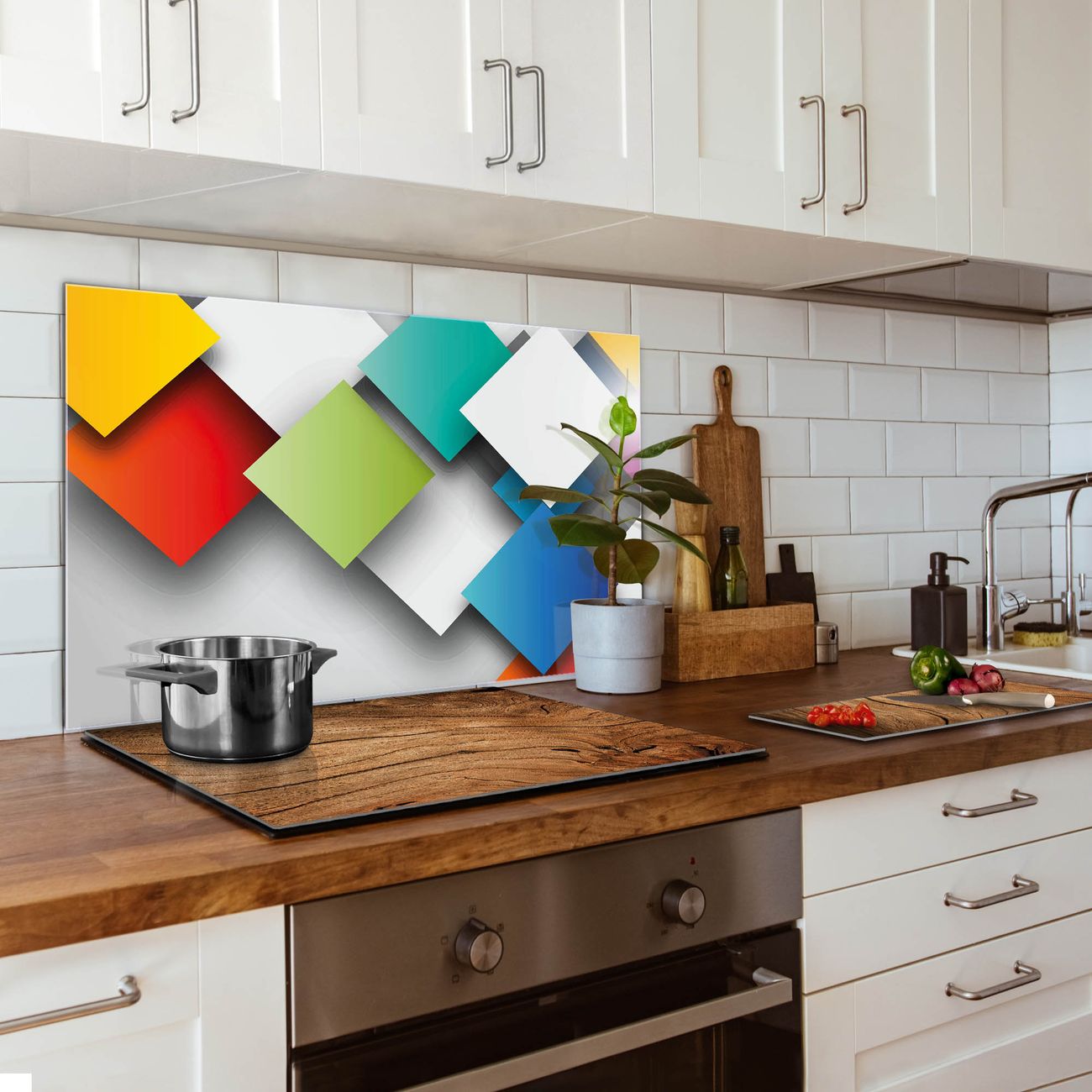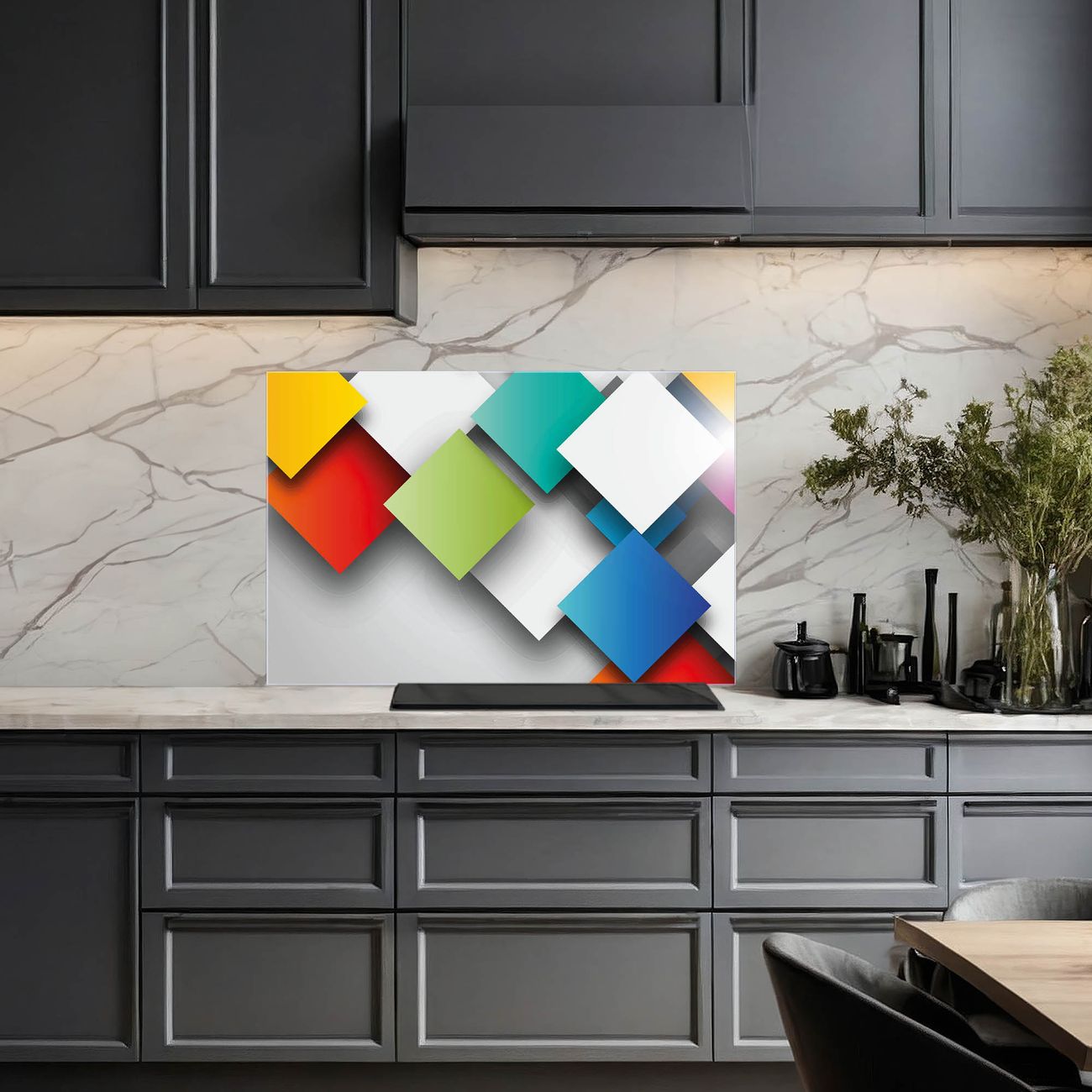 Küchenrückwand Glas Motiv Schwebende Quadrate
