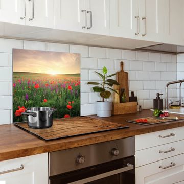 Die banjado Glas Küchenrückwand in verschiedenen Größen mit Motiv Sommerfeld schützt Ihre Küchenfliesen vor Fettspritzern oder Wasserflecken. Der Spritzschutz ist gleichzeitig magnetisch und hält Ihre Rezepte oder Einkaufslisten. 4 Neodym-Magnete und 1 Kreidestift liegen bereits bei. Leuchtende Motive und hochwertiges Material machen den Spritzschutz zum Designobjekt. Das dekorative Glasbild gibt Ihrer Küche ein individuelles Erscheinungsbild. Abgerundete Kanten und Sicherheitsglas sorgen für einen sicheren Einsatz.