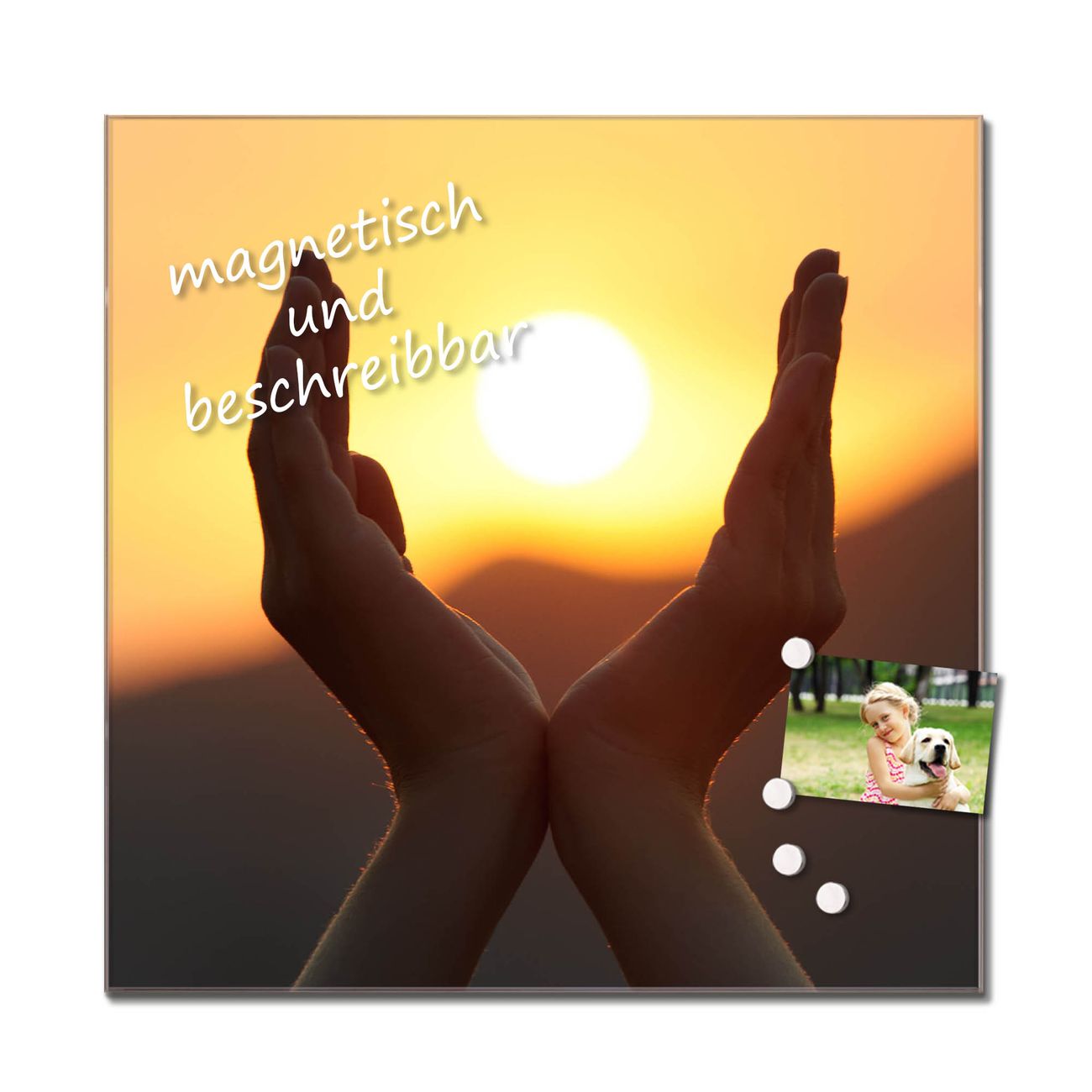 Die Küchenrückwand ist eine elegante Mehrzwecktafel: als Spritzschutz hinter Herd oder Waschbecken, hält Notizen wie ein Memoboard, ist beschreibbar mit Kreidestiften oder Whiteboard-Markern, sieht umwerfend als Glasbild aus. Sie besteht aus gehärtetem Glas, die Rückwand aus einem magnetischen Stahlblech. Durch die superflache Bauweise haben Sie die Wahl aus einer Vielzahl von Befestigungsmöglichkeiten. Sie können die Küchenrückwand mit einem Montagekleber superflach an die Wand kleben oder Sie wählen eines unserer passenden Befestigungssets, welches eine optimale Montage garantiert. Die Küchenrückwand besteht aus zertifiziertem Sicherheitsglas. Durch die mitgelieferten 4 Neodym-Magnete ist Ihre Glas Magnettafel sofort einsatzbereit.