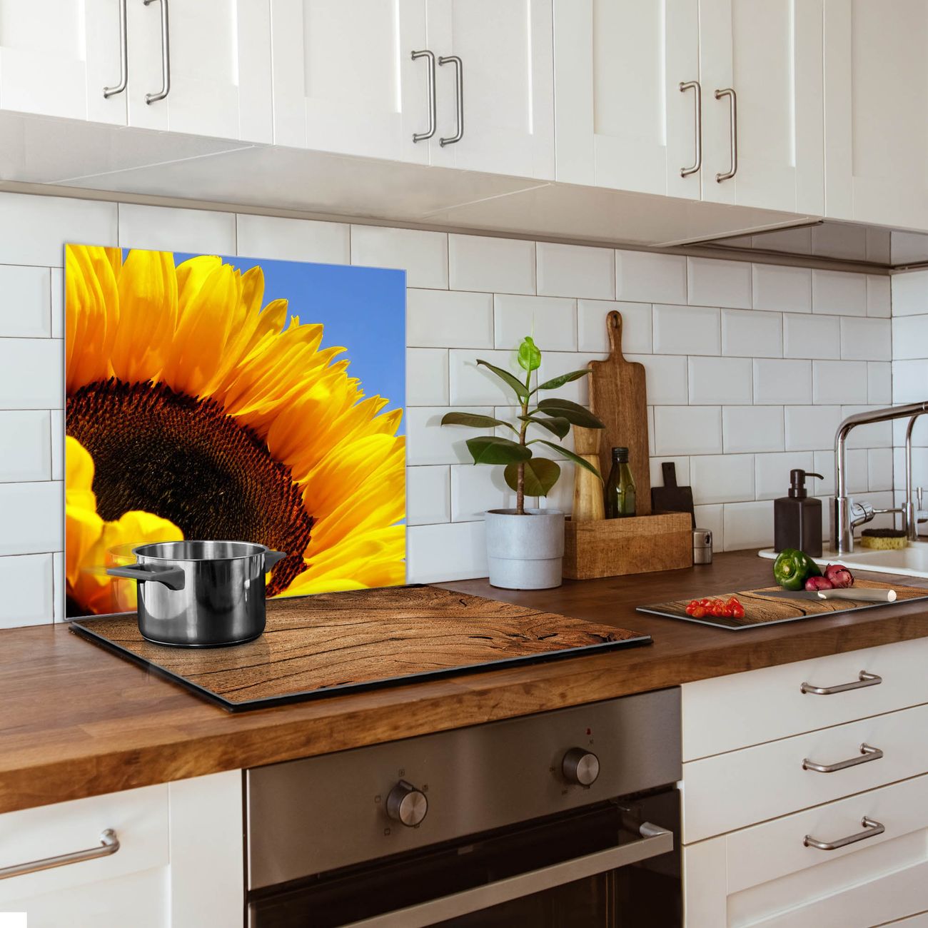Die banjado Glas Küchenrückwand in verschiedenen Größen mit Motiv Sonnenblume schützt Ihre Küchenfliesen vor Fettspritzern oder Wasserflecken. Der Spritzschutz ist gleichzeitig magnetisch und hält Ihre Rezepte oder Einkaufslisten. 4 Neodym-Magnete und 1 Kreidestift liegen bereits bei. Leuchtende Motive und hochwertiges Material machen den Spritzschutz zum Designobjekt. Das dekorative Glasbild gibt Ihrer Küche ein individuelles Erscheinungsbild. Abgerundete Kanten und Sicherheitsglas sorgen für einen sicheren Einsatz.