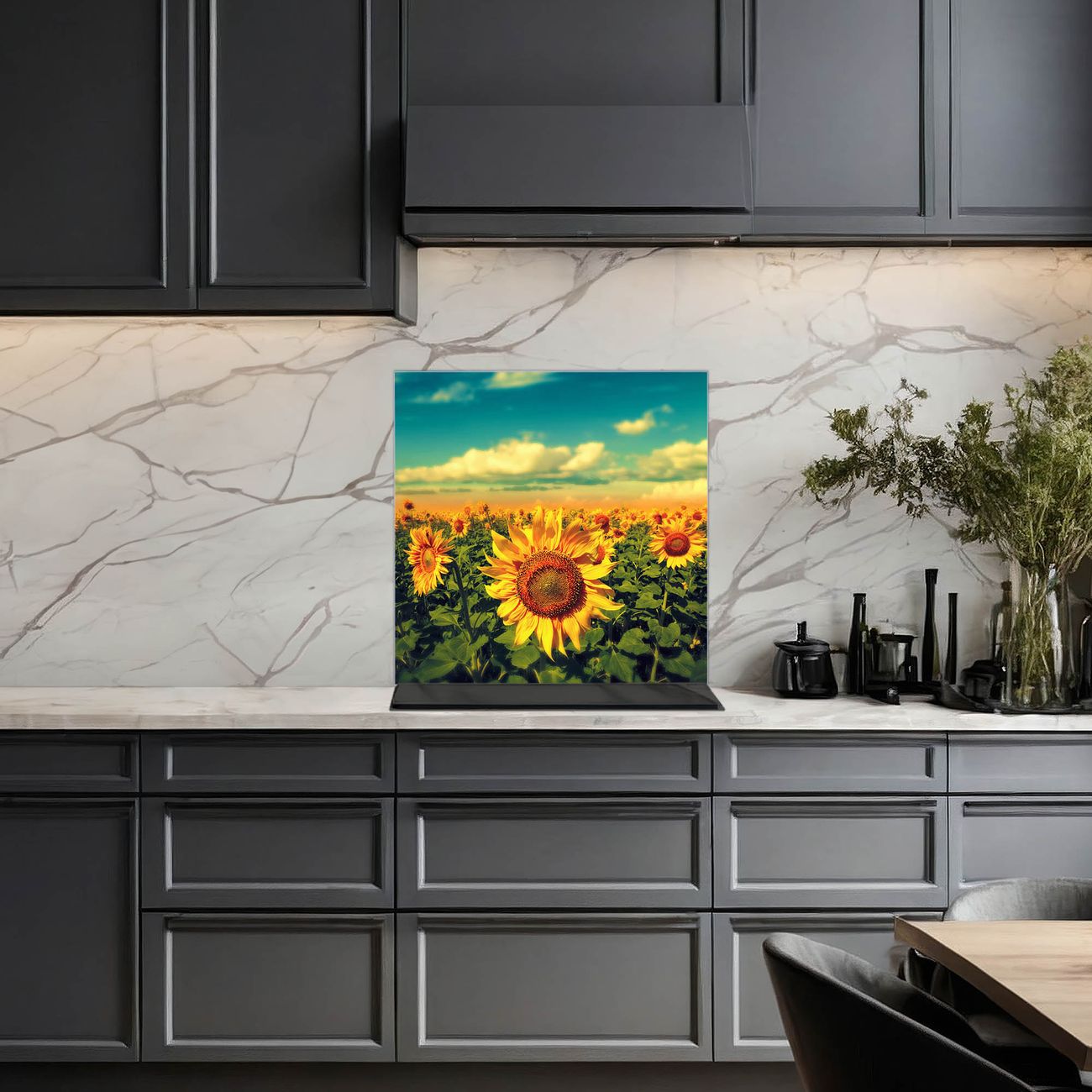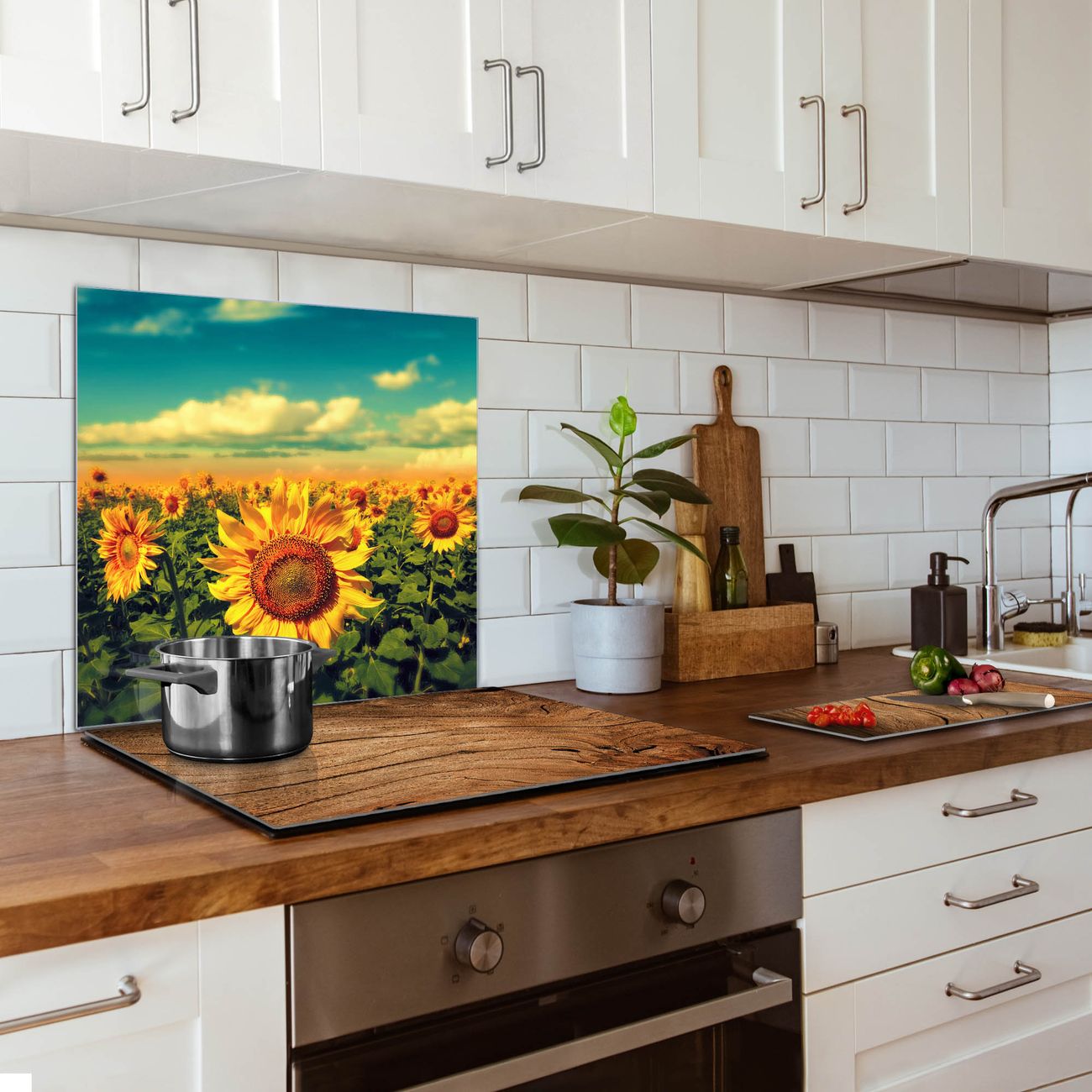 Die banjado Glas Küchenrückwand in verschiedenen Größen mit Motiv Sonnenblumen schützt Ihre Küchenfliesen vor Fettspritzern oder Wasserflecken. Der Spritzschutz ist gleichzeitig magnetisch und hält Ihre Rezepte oder Einkaufslisten. 4 Neodym-Magnete und 1 Kreidestift liegen bereits bei. Leuchtende Motive und hochwertiges Material machen den Spritzschutz zum Designobjekt. Das dekorative Glasbild gibt Ihrer Küche ein individuelles Erscheinungsbild. Abgerundete Kanten und Sicherheitsglas sorgen für einen sicheren Einsatz.