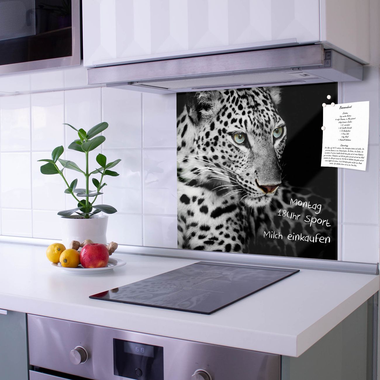 Die Küchenrückwand ist eine elegante Mehrzwecktafel: als Spritzschutz hinter Herd oder Waschbecken, hält Notizen wie ein Memoboard, ist beschreibbar mit Kreidestiften oder Whiteboard-Markern, sieht umwerfend als Glasbild aus. Sie besteht aus gehärtetem Glas, die Rückwand aus einem magnetischen Stahlblech. Durch die superflache Bauweise haben Sie die Wahl aus einer Vielzahl von Befestigungsmöglichkeiten. Sie können die Küchenrückwand mit einem Montagekleber superflach an die Wand kleben oder Sie wählen eines unserer passenden Befestigungssets, welches eine optimale Montage garantiert. Die Küchenrückwand besteht aus zertifiziertem Sicherheitsglas. Durch die mitgelieferten 4 Neodym-Magnete ist Ihre Glas Magnettafel sofort einsatzbereit.