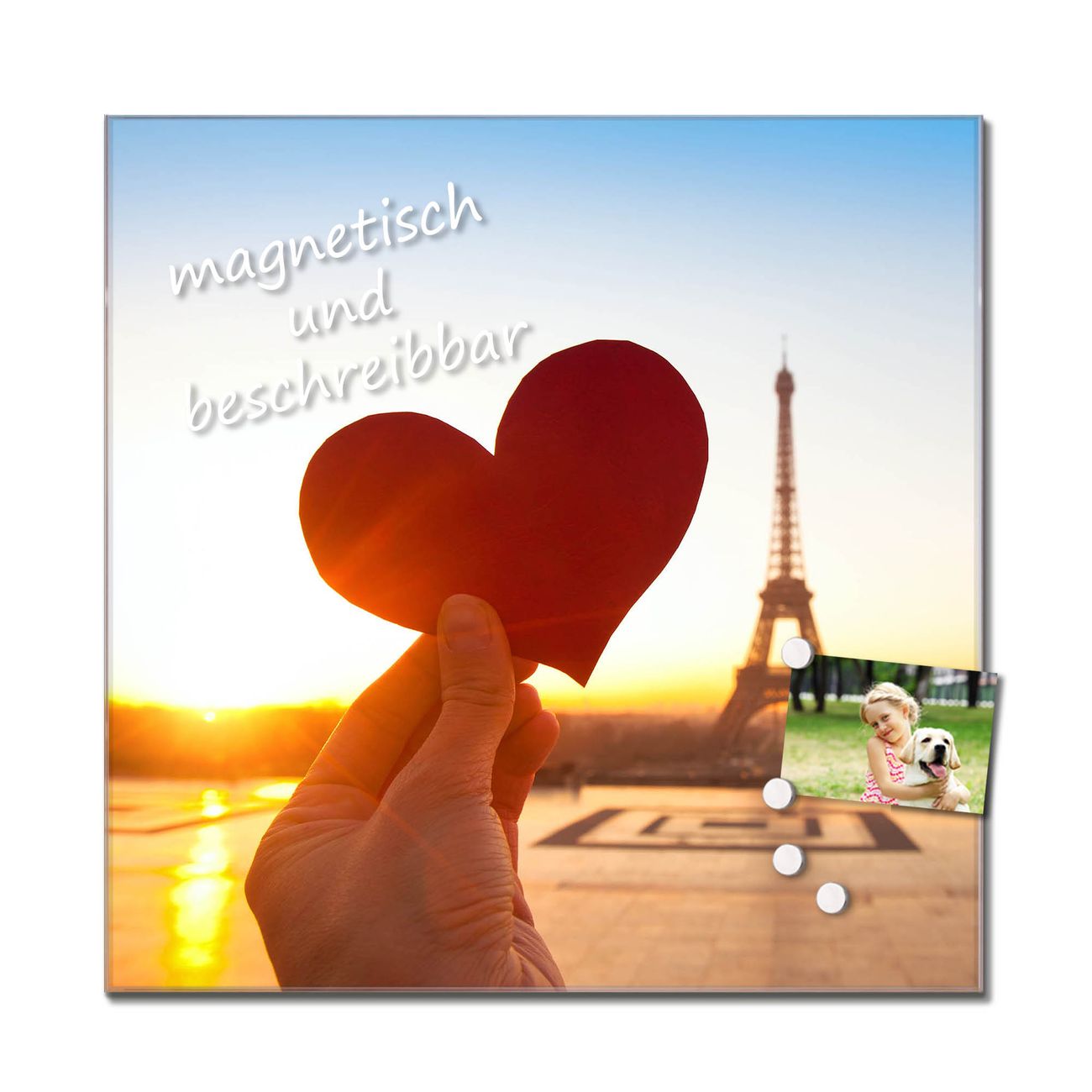 Die banjado Glas Küchenrückwand in verschiedenen Größen mit Motiv Stadt Der Liebe schützt Ihre Küchenfliesen vor Fettspritzern oder Wasserflecken. Der Spritzschutz ist gleichzeitig magnetisch und hält Ihre Rezepte oder Einkaufslisten. 4 Neodym-Magnete und 1 Kreidestift liegen bereits bei. Leuchtende Motive und hochwertiges Material machen den Spritzschutz zum Designobjekt. Das dekorative Glasbild gibt Ihrer Küche ein individuelles Erscheinungsbild. Abgerundete Kanten und Sicherheitsglas sorgen für einen sicheren Einsatz.