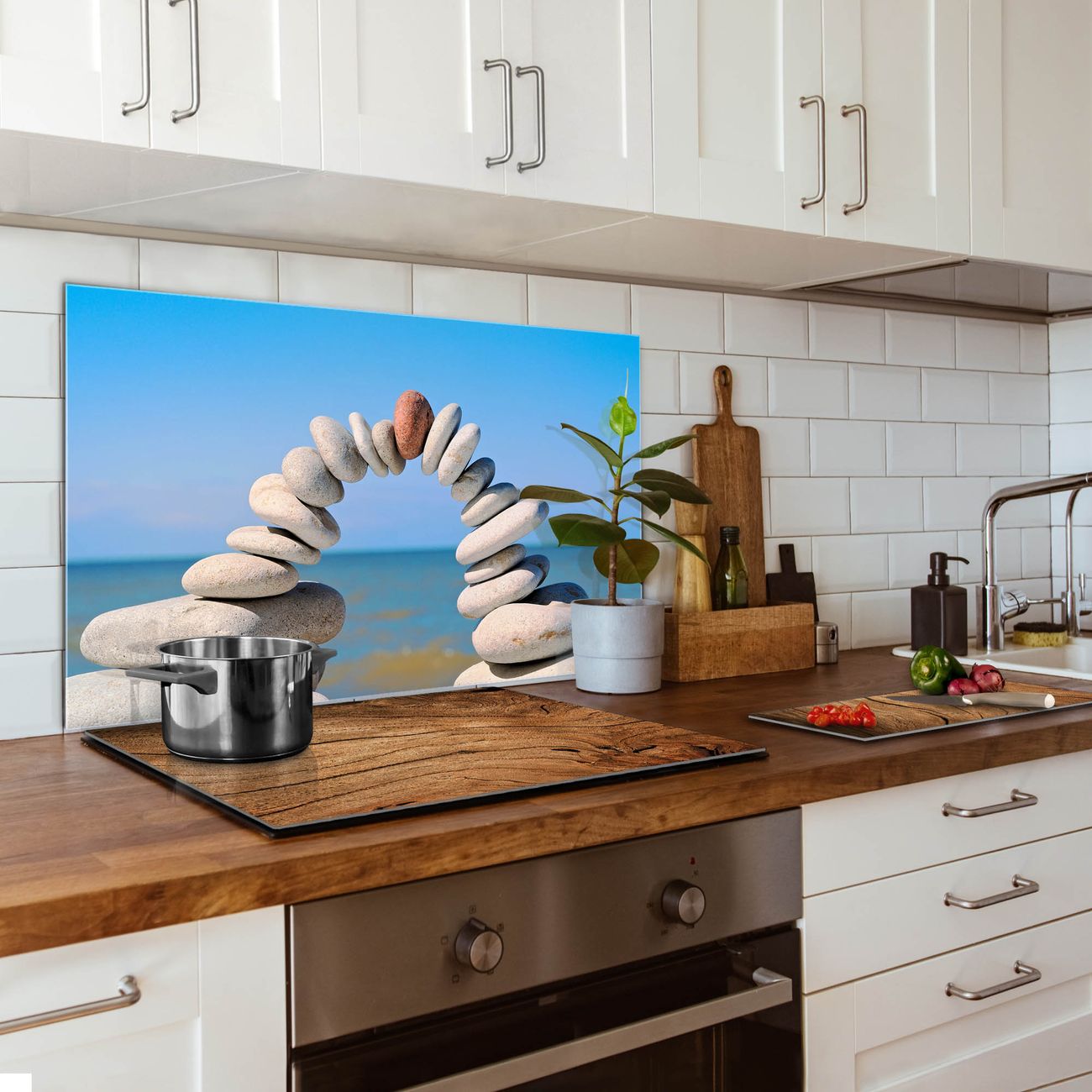 Die banjado Glas Küchenrückwand in verschiedenen Größen mit Motiv Steine&Meer schützt Ihre Küchenfliesen vor Fettspritzern oder Wasserflecken. Der Spritzschutz ist gleichzeitig magnetisch und hält Ihre Rezepte oder Einkaufslisten. 4 Neodym-Magnete und 1 Kreidestift liegen bereits bei. Leuchtende Motive und hochwertiges Material machen den Spritzschutz zum Designobjekt. Das dekorative Glasbild gibt Ihrer Küche ein individuelles Erscheinungsbild. Abgerundete Kanten und Sicherheitsglas sorgen für einen sicheren Einsatz.