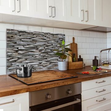 Die banjado Glas Küchenrückwand in verschiedenen Größen mit Motiv Steinwand schützt Ihre Küchenfliesen vor Fettspritzern oder Wasserflecken. Der Spritzschutz ist gleichzeitig magnetisch und hält Ihre Rezepte oder Einkaufslisten. 4 Neodym-Magnete und 1 Kreidestift liegen bereits bei. Leuchtende Motive und hochwertiges Material machen den Spritzschutz zum Designobjekt. Das dekorative Glasbild gibt Ihrer Küche ein individuelles Erscheinungsbild. Abgerundete Kanten und Sicherheitsglas sorgen für einen sicheren Einsatz.
