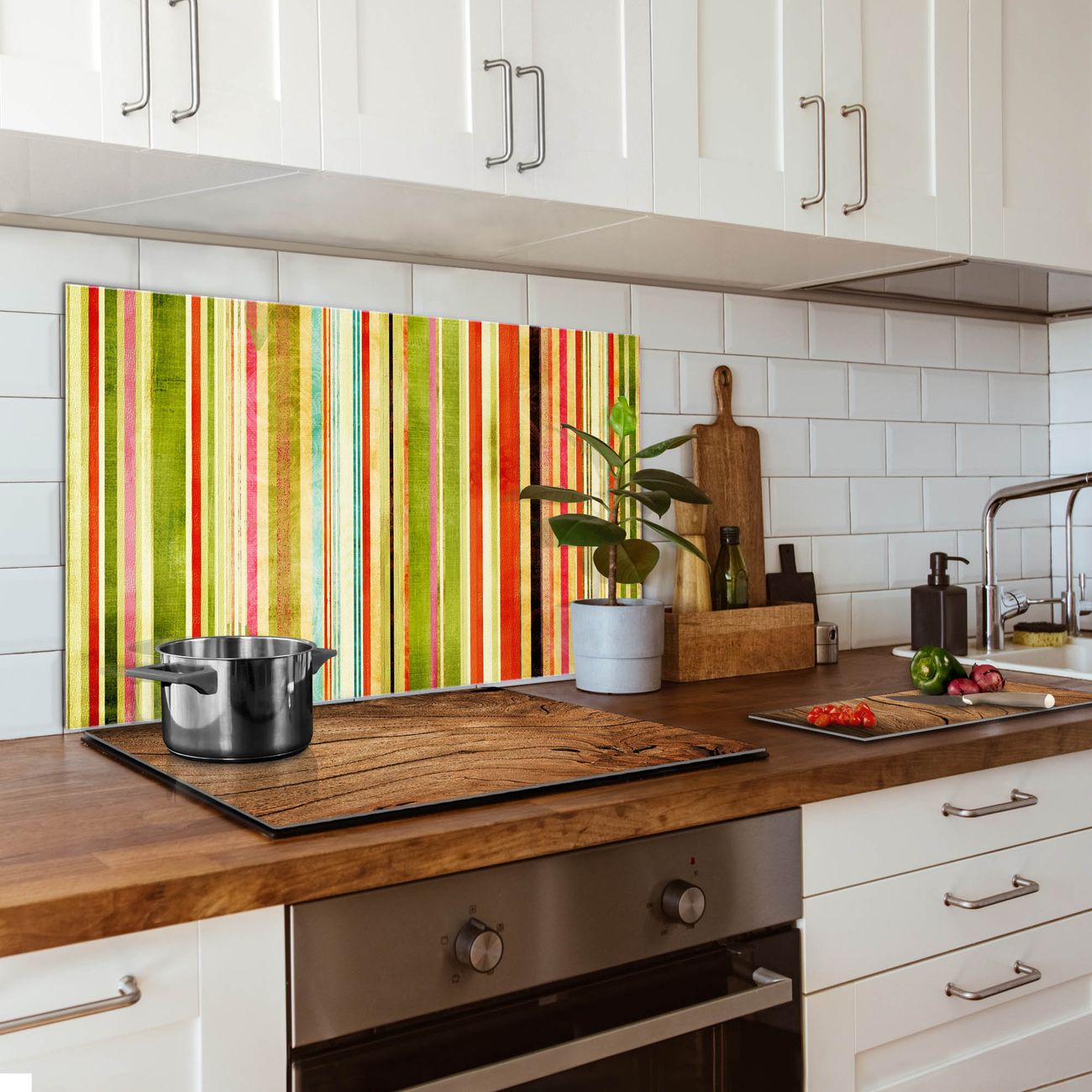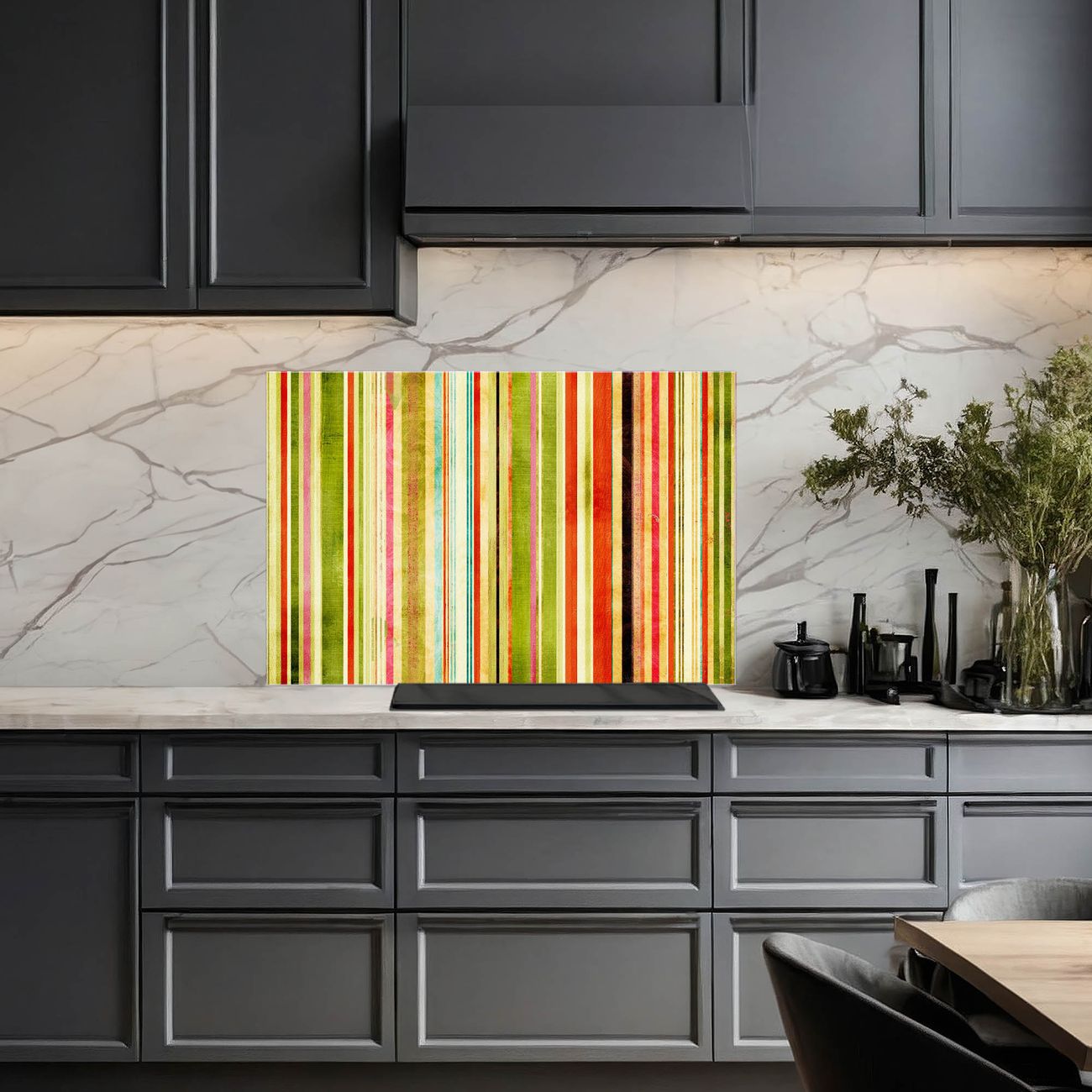 Die banjado Glas Küchenrückwand in verschiedenen Größen mit Motiv Streifen schützt Ihre Küchenfliesen vor Fettspritzern oder Wasserflecken. Der Spritzschutz ist gleichzeitig magnetisch und hält Ihre Rezepte oder Einkaufslisten. 4 Neodym-Magnete und 1 Kreidestift liegen bereits bei. Leuchtende Motive und hochwertiges Material machen den Spritzschutz zum Designobjekt. Das dekorative Glasbild gibt Ihrer Küche ein individuelles Erscheinungsbild. Abgerundete Kanten und Sicherheitsglas sorgen für einen sicheren Einsatz.