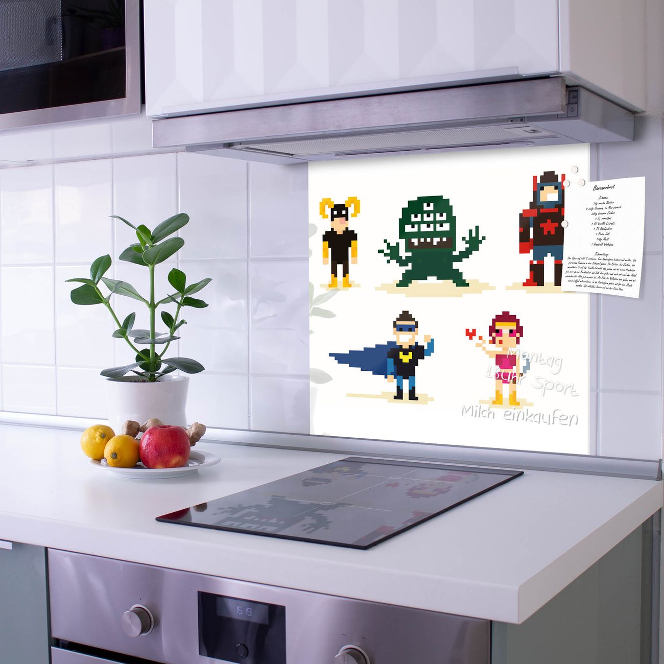 Die banjado Glas Küchenrückwand in verschiedenen Größen mit Motiv Superhelden schützt Ihre Küchenfliesen vor Fettspritzern oder Wasserflecken. Der Spritzschutz ist gleichzeitig magnetisch und hält Ihre Rezepte oder Einkaufslisten. 4 Neodym-Magnete und 1 Kreidestift liegen bereits bei. Leuchtende Motive und hochwertiges Material machen den Spritzschutz zum Designobjekt. Das dekorative Glasbild gibt Ihrer Küche ein individuelles Erscheinungsbild. Abgerundete Kanten und Sicherheitsglas sorgen für einen sicheren Einsatz.