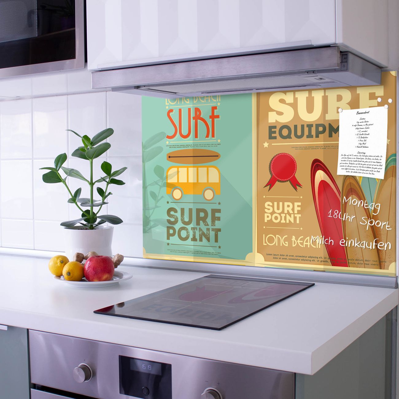 Die banjado Glas Küchenrückwand in verschiedenen Größen mit Motiv Surf Point schützt Ihre Küchenfliesen vor Fettspritzern oder Wasserflecken. Der Spritzschutz ist gleichzeitig magnetisch und hält Ihre Rezepte oder Einkaufslisten. 4 Neodym-Magnete und 1 Kreidestift liegen bereits bei. Leuchtende Motive und hochwertiges Material machen den Spritzschutz zum Designobjekt. Das dekorative Glasbild gibt Ihrer Küche ein individuelles Erscheinungsbild. Abgerundete Kanten und Sicherheitsglas sorgen für einen sicheren Einsatz.