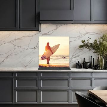Die banjado Glas Küchenrückwand in verschiedenen Größen mit Motiv Surfer Girl schützt Ihre Küchenfliesen vor Fettspritzern oder Wasserflecken. Der Spritzschutz ist gleichzeitig magnetisch und hält Ihre Rezepte oder Einkaufslisten. 4 Neodym-Magnete und 1 Kreidestift liegen bereits bei. Leuchtende Motive und hochwertiges Material machen den Spritzschutz zum Designobjekt. Das dekorative Glasbild gibt Ihrer Küche ein individuelles Erscheinungsbild. Abgerundete Kanten und Sicherheitsglas sorgen für einen sicheren Einsatz.