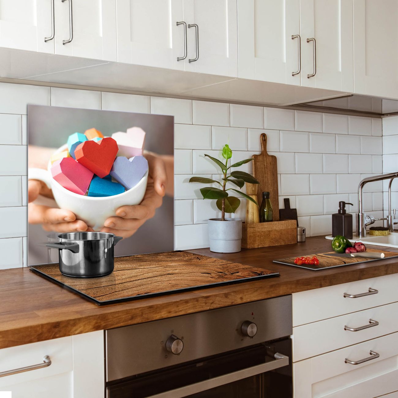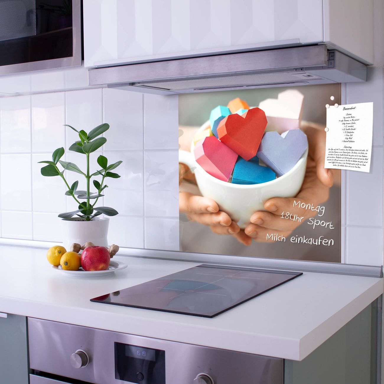 Die banjado Glas Küchenrückwand in verschiedenen Größen mit Motiv Tasse voller Herzen schützt Ihre Küchenfliesen vor Fettspritzern oder Wasserflecken. Der Spritzschutz ist gleichzeitig magnetisch und hält Ihre Rezepte oder Einkaufslisten. 4 Neodym-Magnete und 1 Kreidestift liegen bereits bei. Leuchtende Motive und hochwertiges Material machen den Spritzschutz zum Designobjekt. Das dekorative Glasbild gibt Ihrer Küche ein individuelles Erscheinungsbild. Abgerundete Kanten und Sicherheitsglas sorgen für einen sicheren Einsatz.