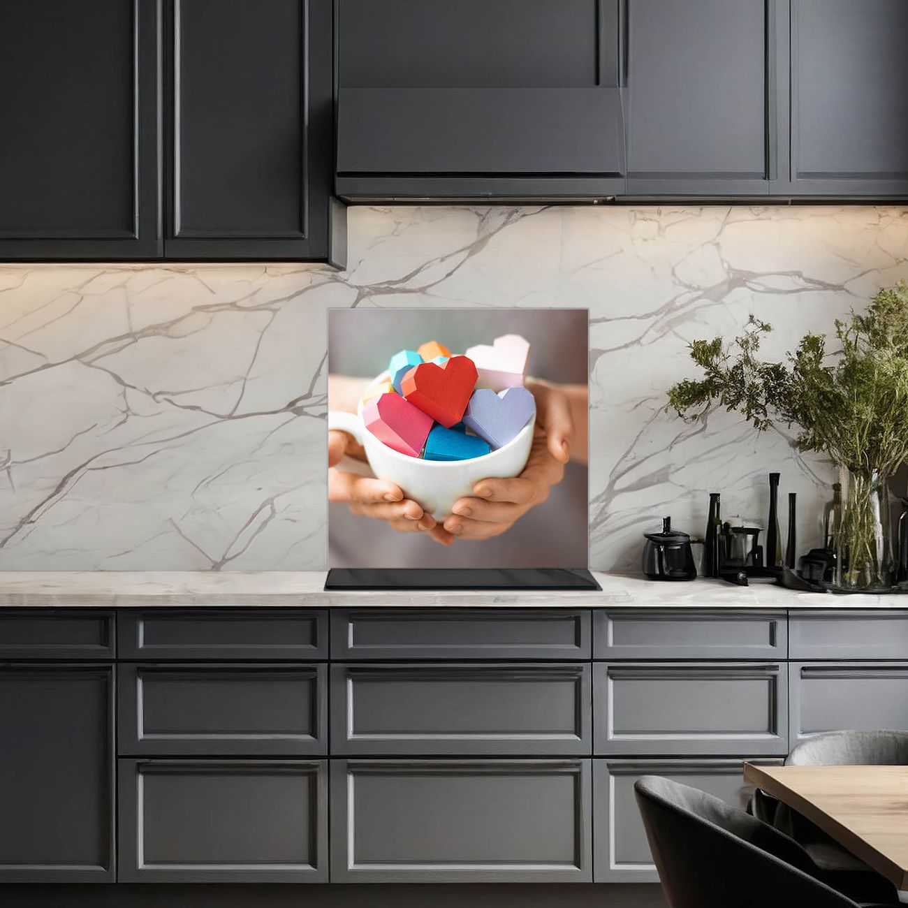 Küchenrückwand Glas Motiv Tasse voller Herzen
