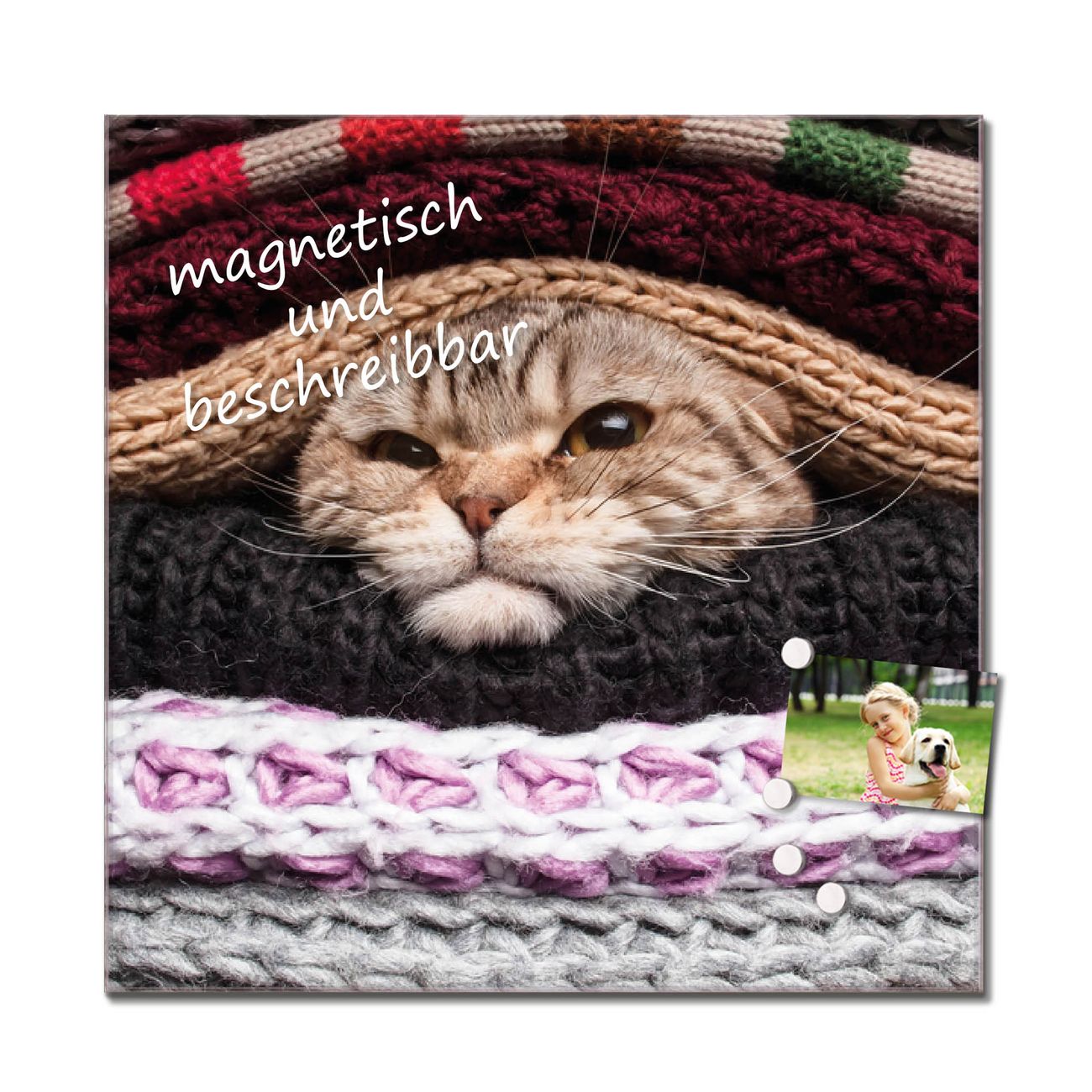 Bitte beachten Sie, dass ausschließlich spezielle Magnete an der Glastafel haften! Wir empfehlen banjado Neodym Magnete, diese sind durch uns auf Wirksamkeit geprüft.