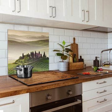 Die banjado Glas Küchenrückwand in verschiedenen Größen mit Motiv Toscana schützt Ihre Küchenfliesen vor Fettspritzern oder Wasserflecken. Der Spritzschutz ist gleichzeitig magnetisch und hält Ihre Rezepte oder Einkaufslisten. 4 Neodym-Magnete und 1 Kreidestift liegen bereits bei. Leuchtende Motive und hochwertiges Material machen den Spritzschutz zum Designobjekt. Das dekorative Glasbild gibt Ihrer Küche ein individuelles Erscheinungsbild. Abgerundete Kanten und Sicherheitsglas sorgen für einen sicheren Einsatz.
