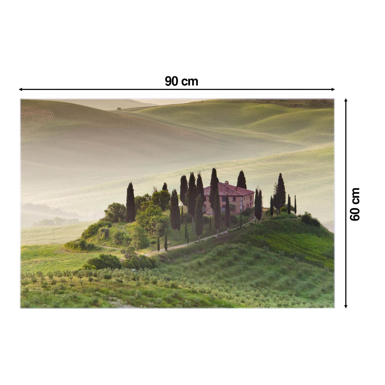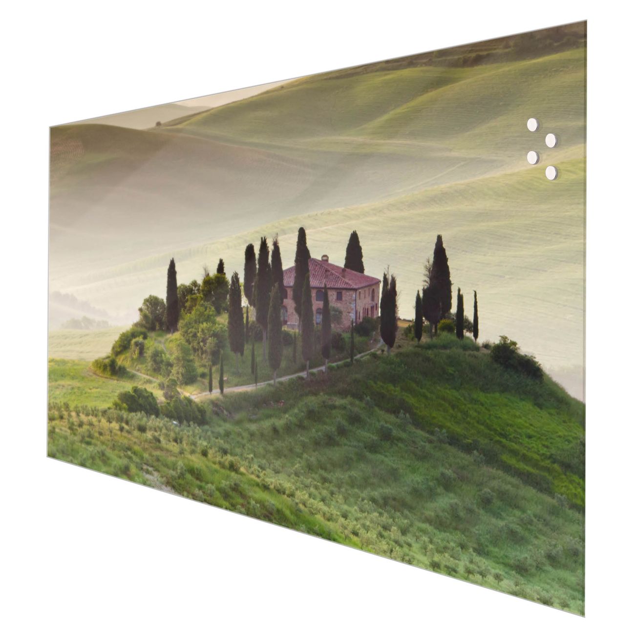 Material  4mm Sicherheitsglas mit Metallrückwand Eigenschaften  beschreibbar, magnetisch, kratzfest Maße  60x90x0,6cm, 8,1 kg schwer Motiv  Nummer 10433 Toscana Zubehör  inklusive 4 Neodym-Magnete