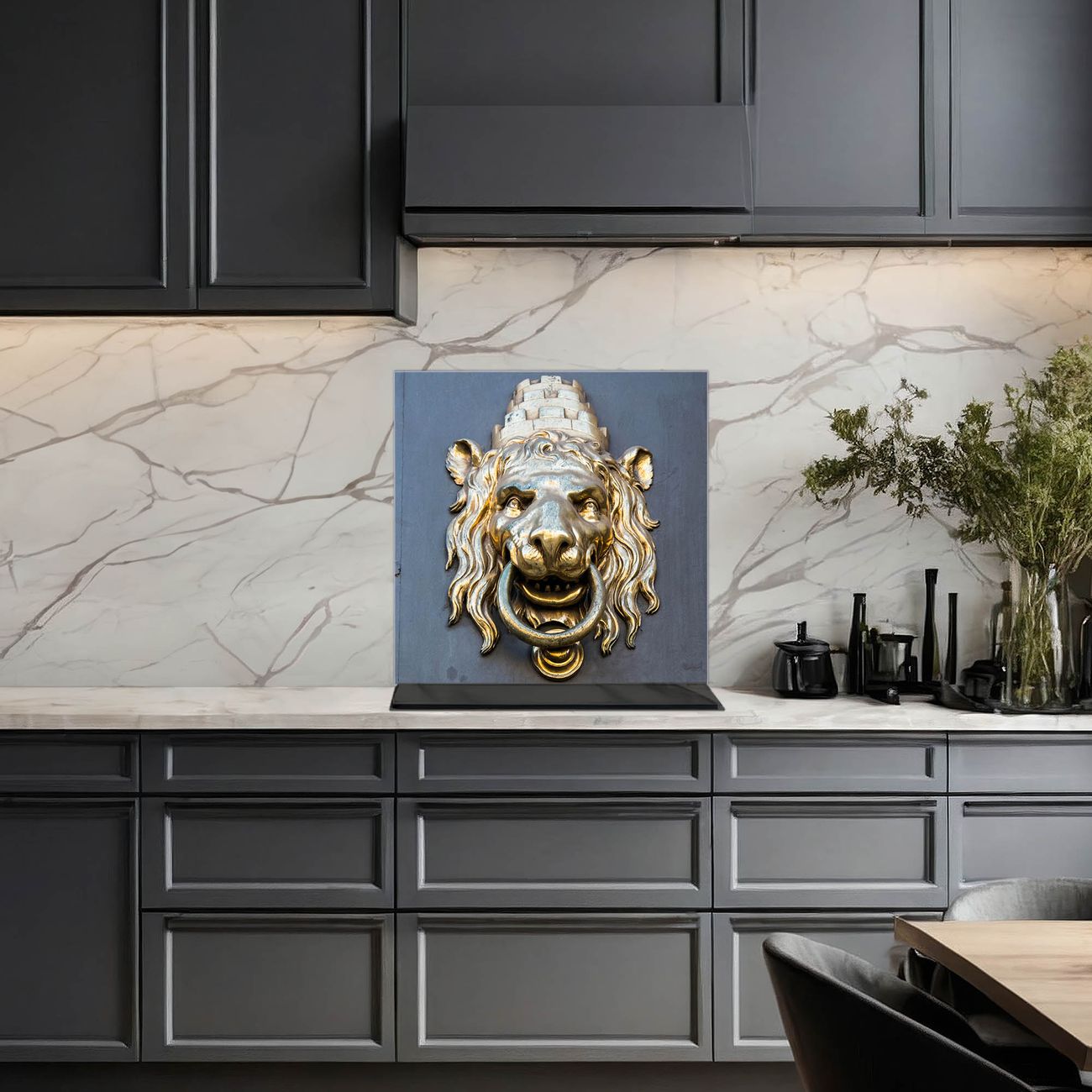 Küchenrückwand Glas Motiv Türklopfer Löwe