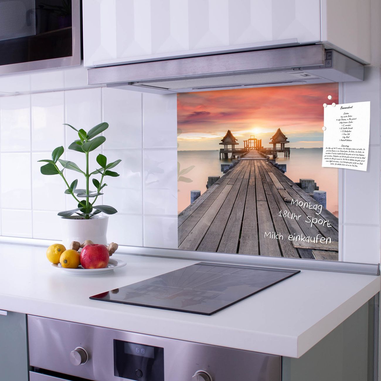 Die banjado Glas Küchenrückwand in verschiedenen Größen mit Motiv Überm Nebelmeer schützt Ihre Küchenfliesen vor Fettspritzern oder Wasserflecken. Der Spritzschutz ist gleichzeitig magnetisch und hält Ihre Rezepte oder Einkaufslisten. 4 Neodym-Magnete und 1 Kreidestift liegen bereits bei. Leuchtende Motive und hochwertiges Material machen den Spritzschutz zum Designobjekt. Das dekorative Glasbild gibt Ihrer Küche ein individuelles Erscheinungsbild. Abgerundete Kanten und Sicherheitsglas sorgen für einen sicheren Einsatz.