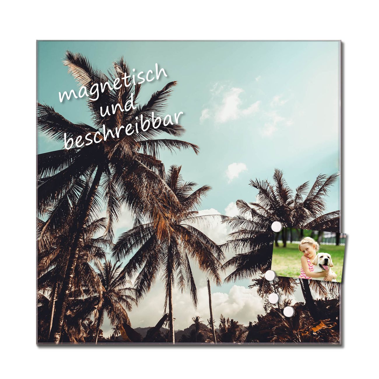 Bitte beachten Sie, dass ausschließlich spezielle Magnete an der Glastafel haften! Wir empfehlen banjado Neodym Magnete, diese sind durch uns auf Wirksamkeit geprüft.