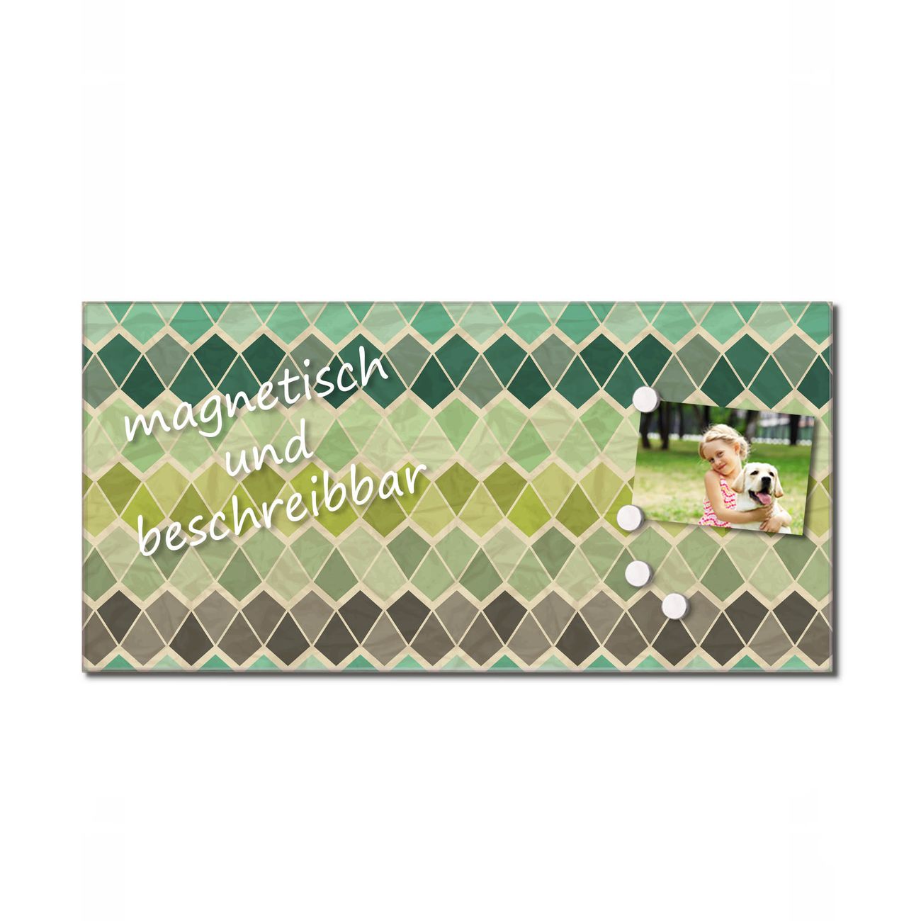 Bitte beachten Sie, dass ausschließlich spezielle Magnete an der Glastafel haften! Wir empfehlen banjado Neodym Magnete, diese sind durch uns auf Wirksamkeit geprüft.