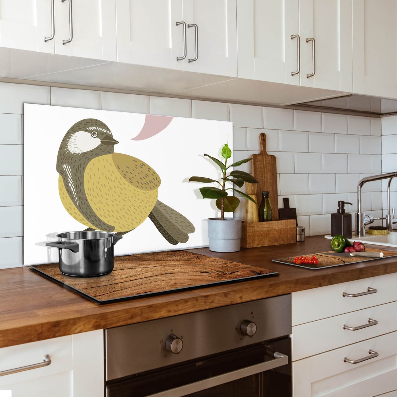 Küchenrückwand Glas Motiv Vogel mit Sprechblase