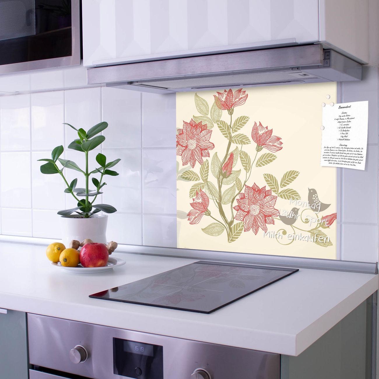 Die Küchenrückwand ist eine elegante Mehrzwecktafel: als Spritzschutz hinter Herd oder Waschbecken, hält Notizen wie ein Memoboard, ist beschreibbar mit Kreidestiften oder Whiteboard-Markern, sieht umwerfend als Glasbild aus. Sie besteht aus gehärtetem Glas, die Rückwand aus einem magnetischen Stahlblech. Durch die superflache Bauweise haben Sie die Wahl aus einer Vielzahl von Befestigungsmöglichkeiten. Sie können die Küchenrückwand mit einem Montagekleber superflach an die Wand kleben oder Sie wählen eines unserer passenden Befestigungssets, welches eine optimale Montage garantiert. Die Küchenrückwand besteht aus zertifiziertem Sicherheitsglas. Durch die mitgelieferten 4 Neodym-Magnete ist Ihre Glas Magnettafel sofort einsatzbereit.