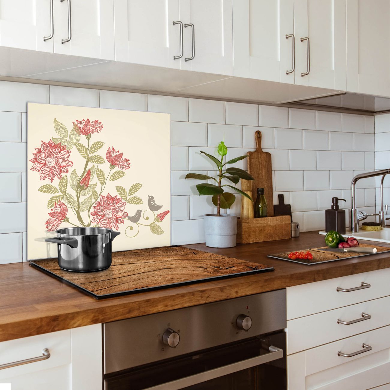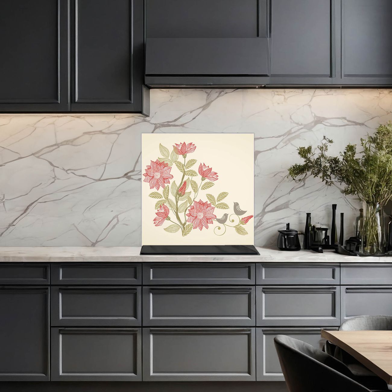 Die banjado Glas Küchenrückwand in verschiedenen Größen mit Motiv Vogelpaar schützt Ihre Küchenfliesen vor Fettspritzern oder Wasserflecken. Der Spritzschutz ist gleichzeitig magnetisch und hält Ihre Rezepte oder Einkaufslisten. 4 Neodym-Magnete und 1 Kreidestift liegen bereits bei. Leuchtende Motive und hochwertiges Material machen den Spritzschutz zum Designobjekt. Das dekorative Glasbild gibt Ihrer Küche ein individuelles Erscheinungsbild. Abgerundete Kanten und Sicherheitsglas sorgen für einen sicheren Einsatz.