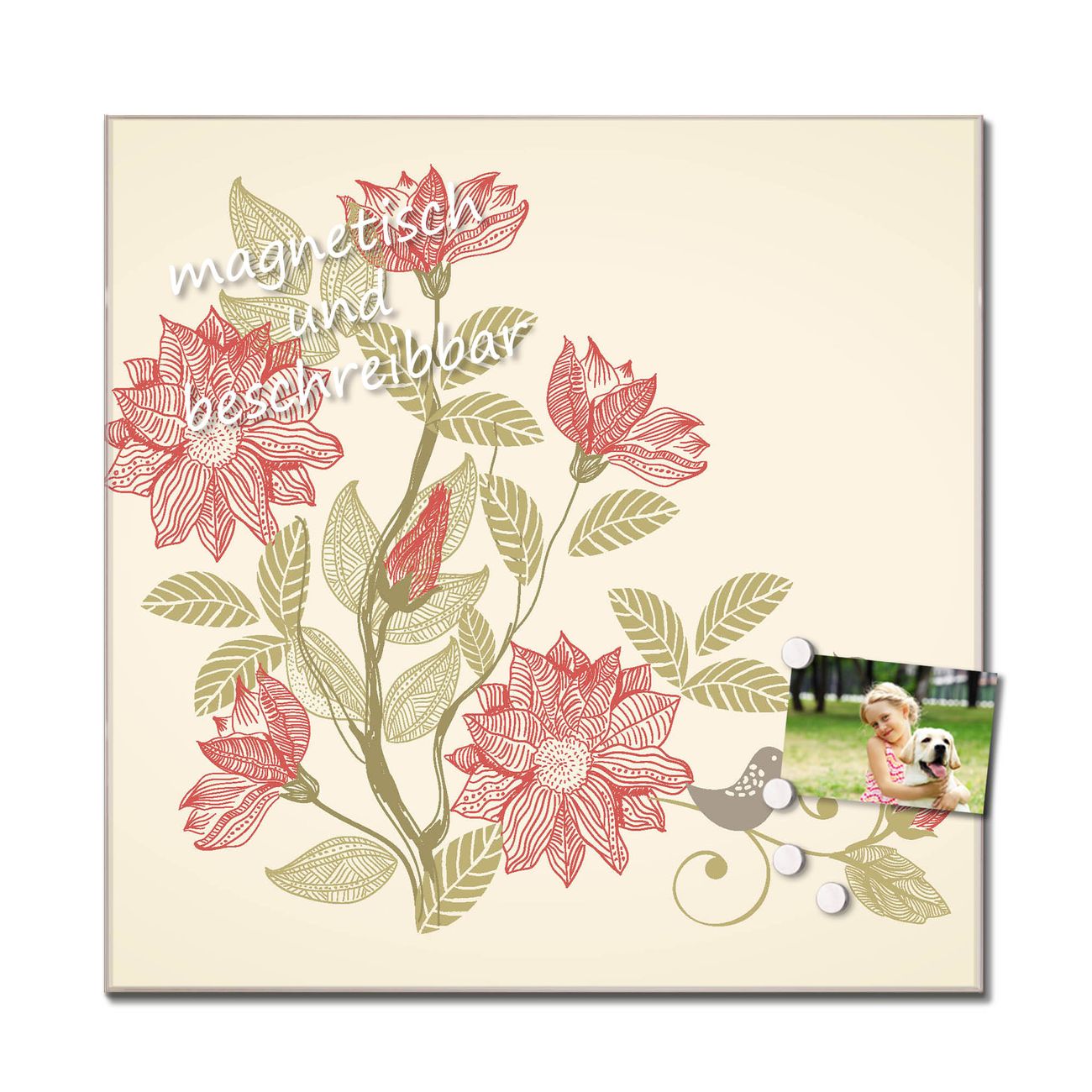 Bitte beachten Sie, dass ausschließlich spezielle Magnete an der Glastafel haften! Wir empfehlen banjado Neodym Magnete, diese sind durch uns auf Wirksamkeit geprüft.