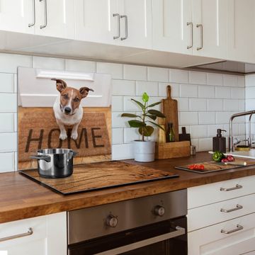 Die banjado Glas Küchenrückwand in verschiedenen Größen mit Motiv Wachhund Jack Russel schützt Ihre Küchenfliesen vor Fettspritzern oder Wasserflecken. Der Spritzschutz ist gleichzeitig magnetisch und hält Ihre Rezepte oder Einkaufslisten. 4 Neodym-Magnete und 1 Kreidestift liegen bereits bei. Leuchtende Motive und hochwertiges Material machen den Spritzschutz zum Designobjekt. Das dekorative Glasbild gibt Ihrer Küche ein individuelles Erscheinungsbild. Abgerundete Kanten und Sicherheitsglas sorgen für einen sicheren Einsatz.