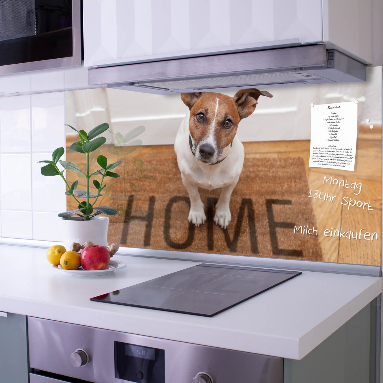 Die banjado Glas Küchenrückwand in verschiedenen Größen mit Motiv Wachhund Jack Russel schützt Ihre Küchenfliesen vor Fettspritzern oder Wasserflecken. Der Spritzschutz ist gleichzeitig magnetisch und hält Ihre Rezepte oder Einkaufslisten. 4 Neodym-Magnete und 1 Kreidestift liegen bereits bei. Leuchtende Motive und hochwertiges Material machen den Spritzschutz zum Designobjekt. Das dekorative Glasbild gibt Ihrer Küche ein individuelles Erscheinungsbild. Abgerundete Kanten und Sicherheitsglas sorgen für einen sicheren Einsatz.