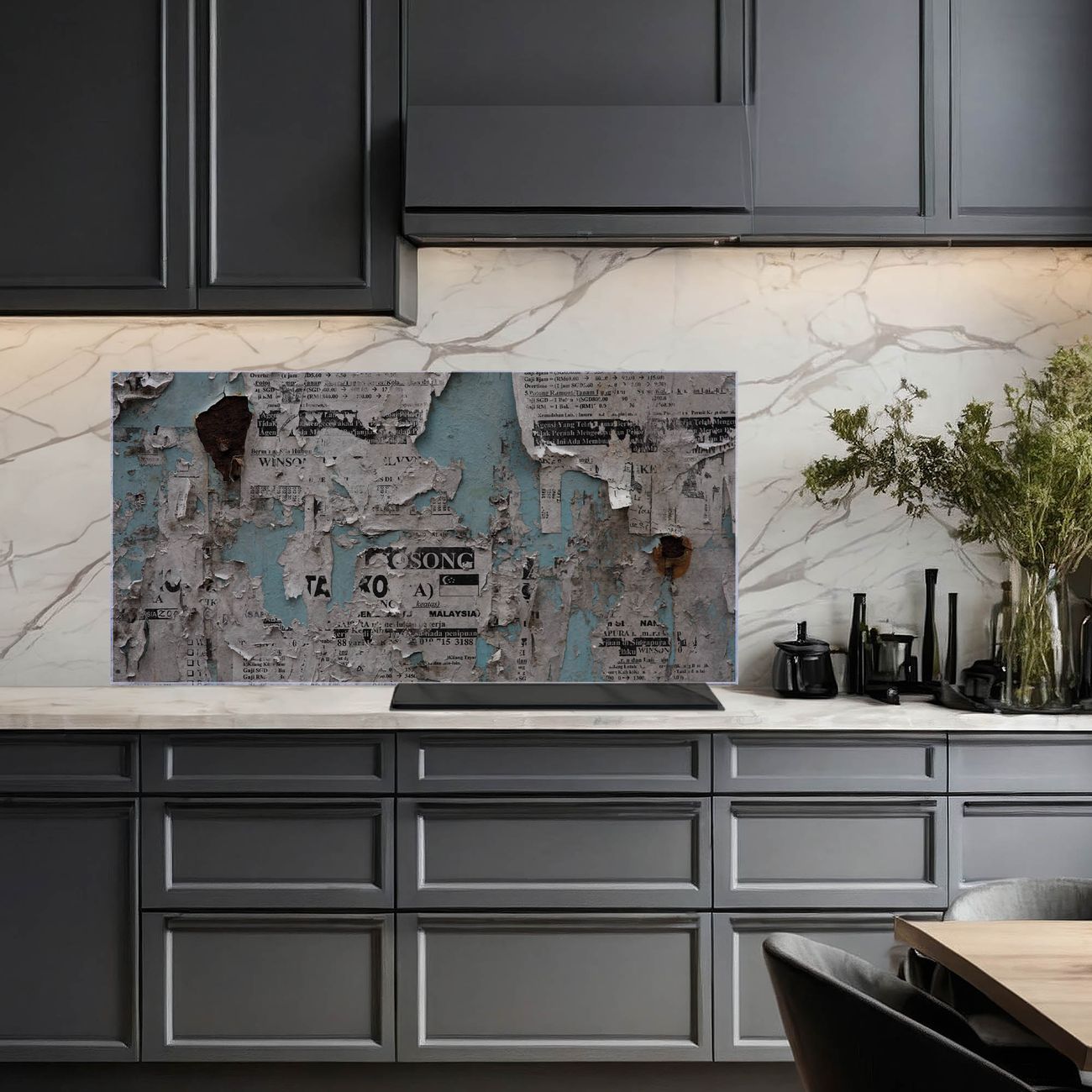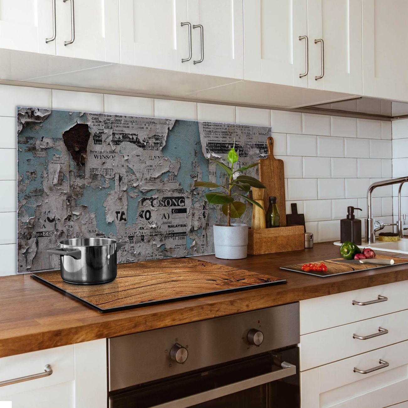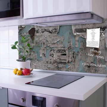 Küchenrückwand Glas Motiv Wand mit Zeitungen