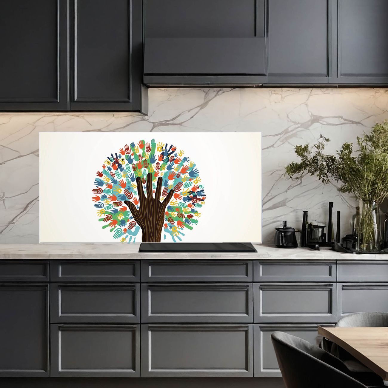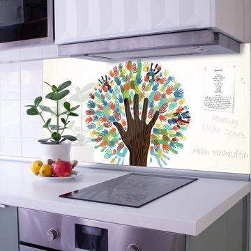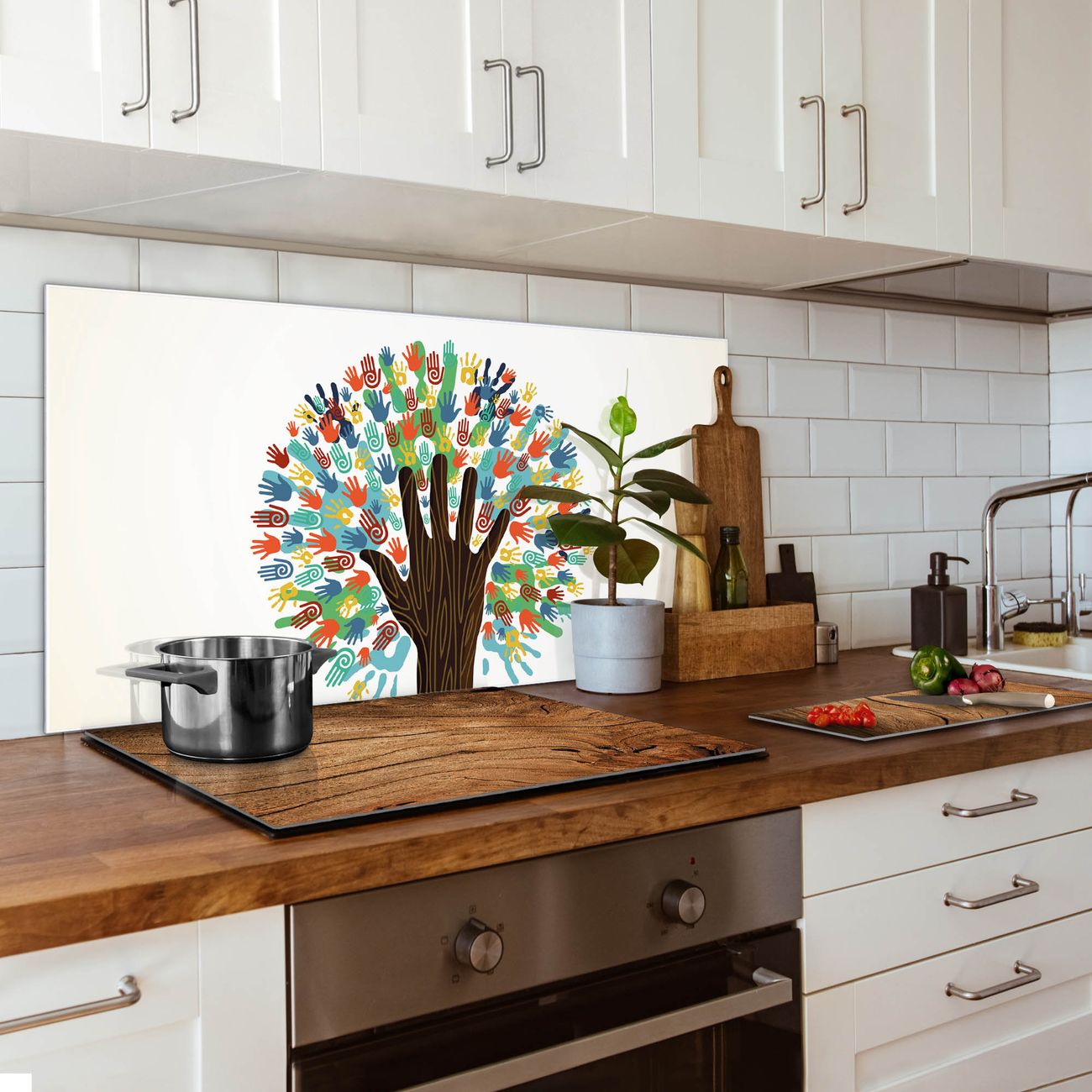 Die banjado Glas Küchenrückwand in verschiedenen Größen mit Motiv We are the World schützt Ihre Küchenfliesen vor Fettspritzern oder Wasserflecken. Der Spritzschutz ist gleichzeitig magnetisch und hält Ihre Rezepte oder Einkaufslisten. 4 Neodym-Magnete und 1 Kreidestift liegen bereits bei. Leuchtende Motive und hochwertiges Material machen den Spritzschutz zum Designobjekt. Das dekorative Glasbild gibt Ihrer Küche ein individuelles Erscheinungsbild. Abgerundete Kanten und Sicherheitsglas sorgen für einen sicheren Einsatz.