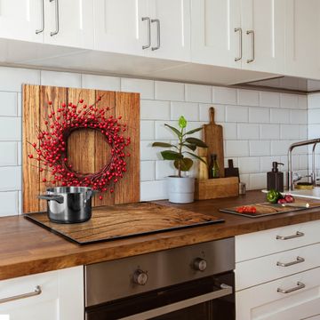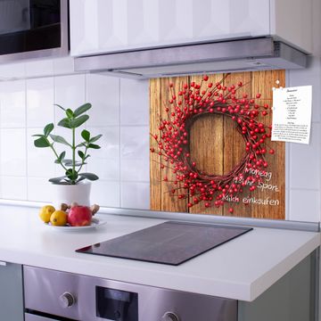 Die banjado Glas Küchenrückwand in verschiedenen Größen mit Motiv Weihnachtskranz schützt Ihre Küchenfliesen vor Fettspritzern oder Wasserflecken. Der Spritzschutz ist gleichzeitig magnetisch und hält Ihre Rezepte oder Einkaufslisten. 4 Neodym-Magnete und 1 Kreidestift liegen bereits bei. Leuchtende Motive und hochwertiges Material machen den Spritzschutz zum Designobjekt. Das dekorative Glasbild gibt Ihrer Küche ein individuelles Erscheinungsbild. Abgerundete Kanten und Sicherheitsglas sorgen für einen sicheren Einsatz.