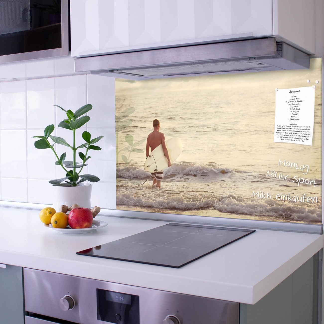 Die banjado Glas Küchenrückwand in verschiedenen Größen mit Motiv Wellenreiten Gehen 2 schützt Ihre Küchenfliesen vor Fettspritzern oder Wasserflecken. Der Spritzschutz ist gleichzeitig magnetisch und hält Ihre Rezepte oder Einkaufslisten. 4 Neodym-Magnete und 1 Kreidestift liegen bereits bei. Leuchtende Motive und hochwertiges Material machen den Spritzschutz zum Designobjekt. Das dekorative Glasbild gibt Ihrer Küche ein individuelles Erscheinungsbild. Abgerundete Kanten und Sicherheitsglas sorgen für einen sicheren Einsatz.
