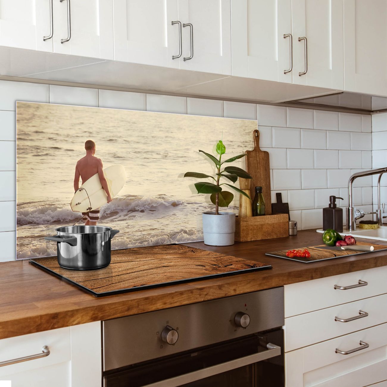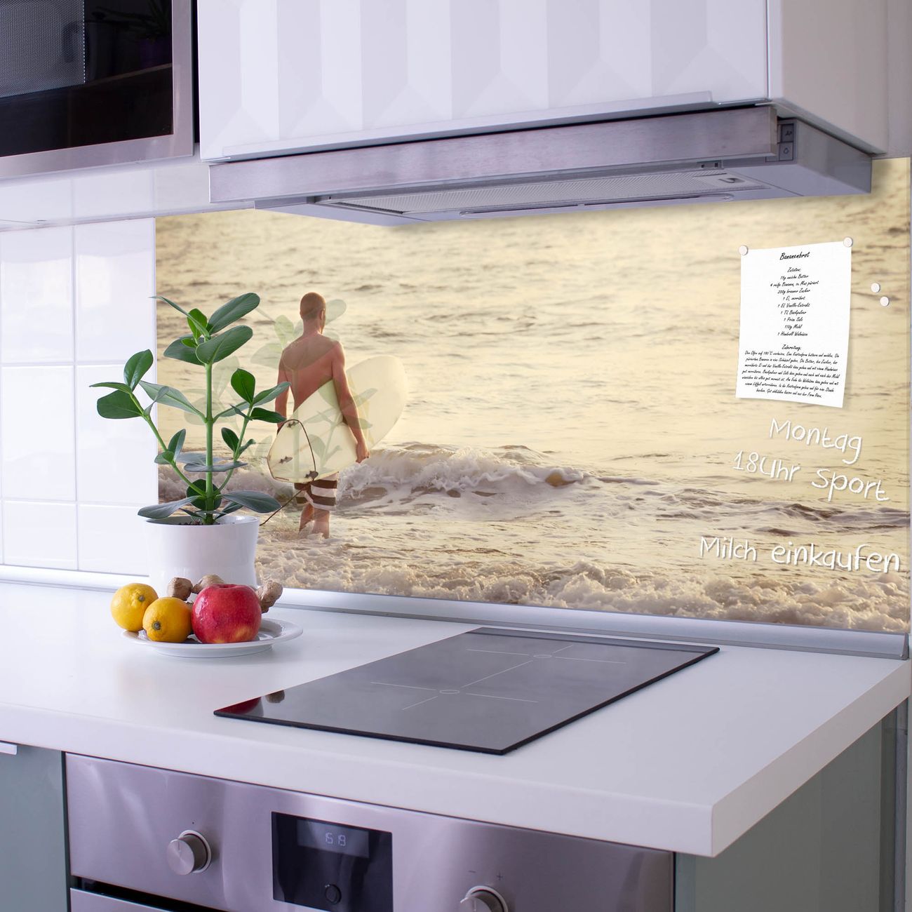 Die banjado Glas Küchenrückwand in verschiedenen Größen mit Motiv Wellenreiten Gehen 2 schützt Ihre Küchenfliesen vor Fettspritzern oder Wasserflecken. Der Spritzschutz ist gleichzeitig magnetisch und hält Ihre Rezepte oder Einkaufslisten. 4 Neodym-Magnete und 1 Kreidestift liegen bereits bei. Leuchtende Motive und hochwertiges Material machen den Spritzschutz zum Designobjekt. Das dekorative Glasbild gibt Ihrer Küche ein individuelles Erscheinungsbild. Abgerundete Kanten und Sicherheitsglas sorgen für einen sicheren Einsatz.