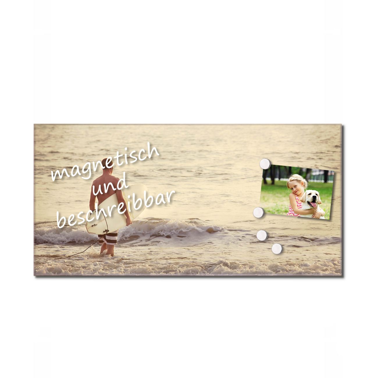 Material  4mm Sicherheitsglas mit Metallrückwand Eigenschaften  beschreibbar, magnetisch, kratzfest Maße  55x110x0,6cm, 9,0 kg schwer Motiv  Nummer 10632 Wellenreiten Gehen 2 Zubehör  inklusive 4 Neodym-Magnete