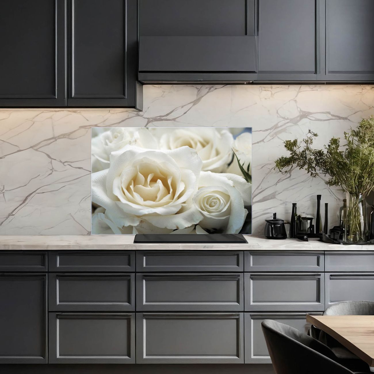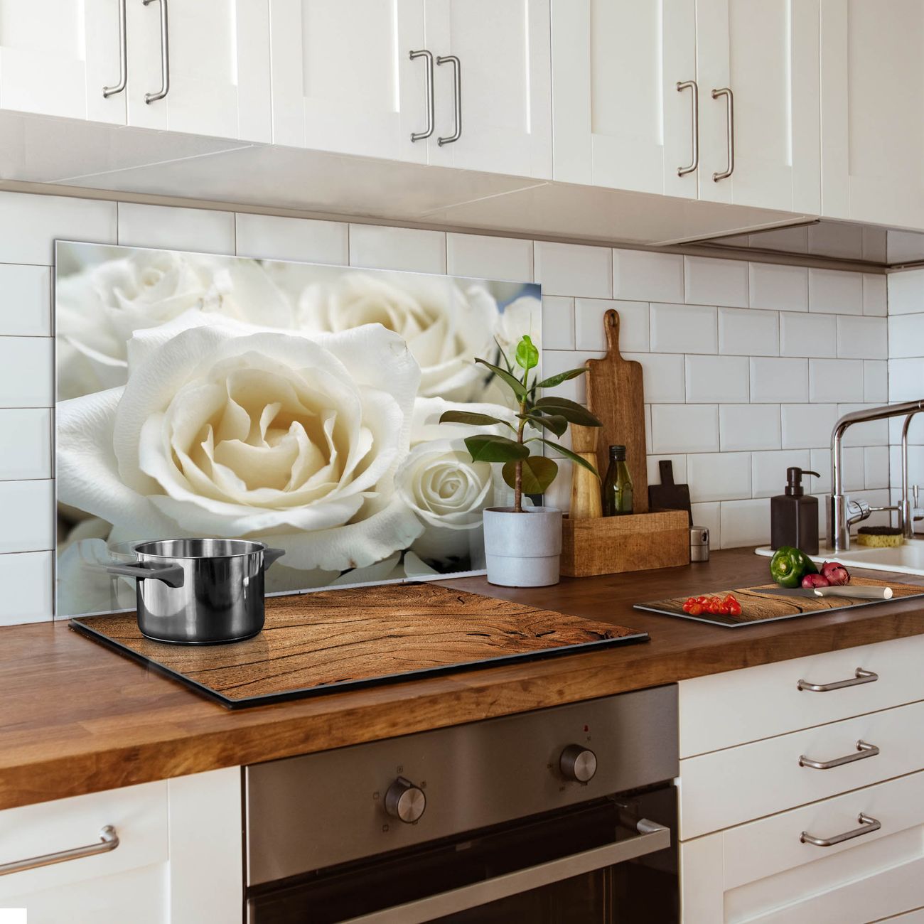 Die banjado Glas Küchenrückwand in verschiedenen Größen mit Motiv White Roses schützt Ihre Küchenfliesen vor Fettspritzern oder Wasserflecken. Der Spritzschutz ist gleichzeitig magnetisch und hält Ihre Rezepte oder Einkaufslisten. 4 Neodym-Magnete und 1 Kreidestift liegen bereits bei. Leuchtende Motive und hochwertiges Material machen den Spritzschutz zum Designobjekt. Das dekorative Glasbild gibt Ihrer Küche ein individuelles Erscheinungsbild. Abgerundete Kanten und Sicherheitsglas sorgen für einen sicheren Einsatz.