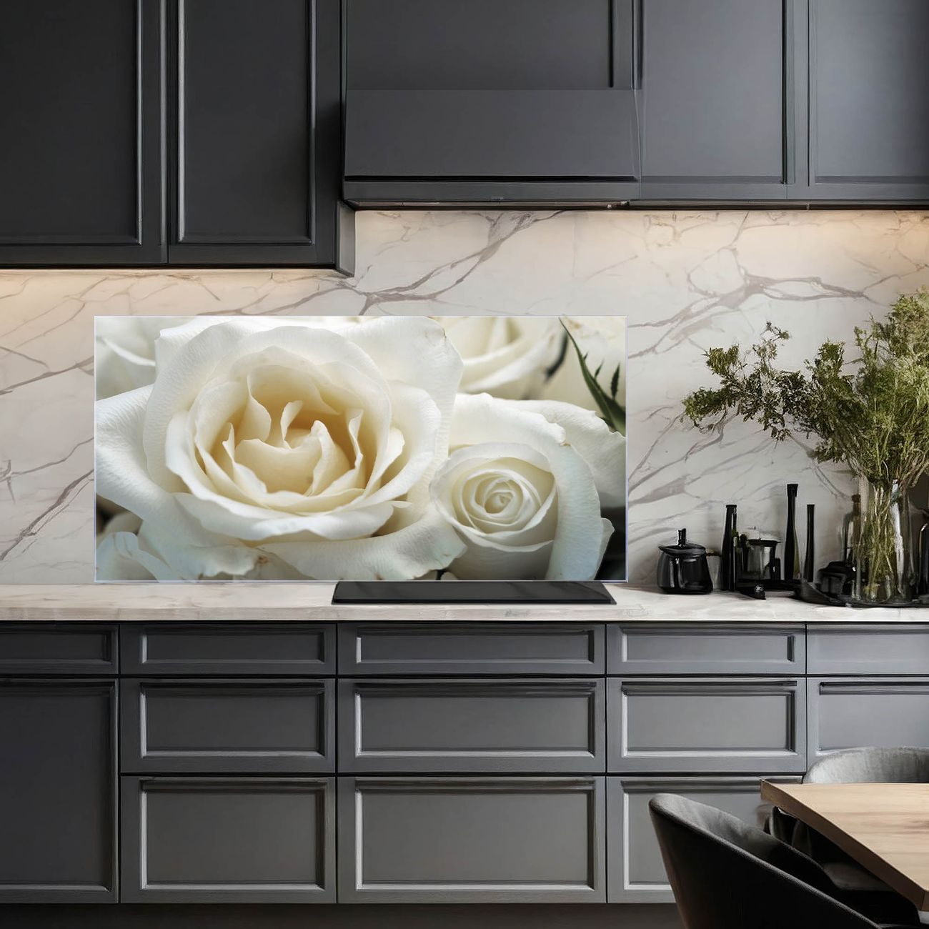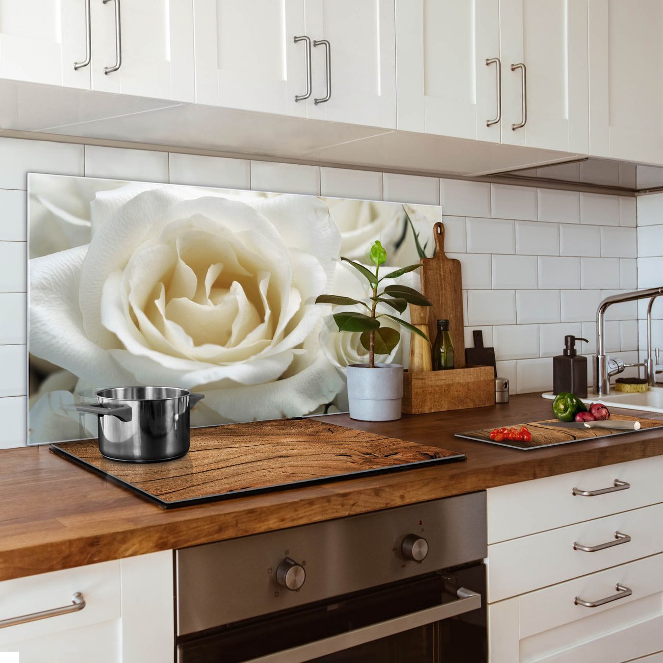 Die banjado Glas Küchenrückwand in verschiedenen Größen mit Motiv White Roses schützt Ihre Küchenfliesen vor Fettspritzern oder Wasserflecken. Der Spritzschutz ist gleichzeitig magnetisch und hält Ihre Rezepte oder Einkaufslisten. 4 Neodym-Magnete und 1 Kreidestift liegen bereits bei. Leuchtende Motive und hochwertiges Material machen den Spritzschutz zum Designobjekt. Das dekorative Glasbild gibt Ihrer Küche ein individuelles Erscheinungsbild. Abgerundete Kanten und Sicherheitsglas sorgen für einen sicheren Einsatz.