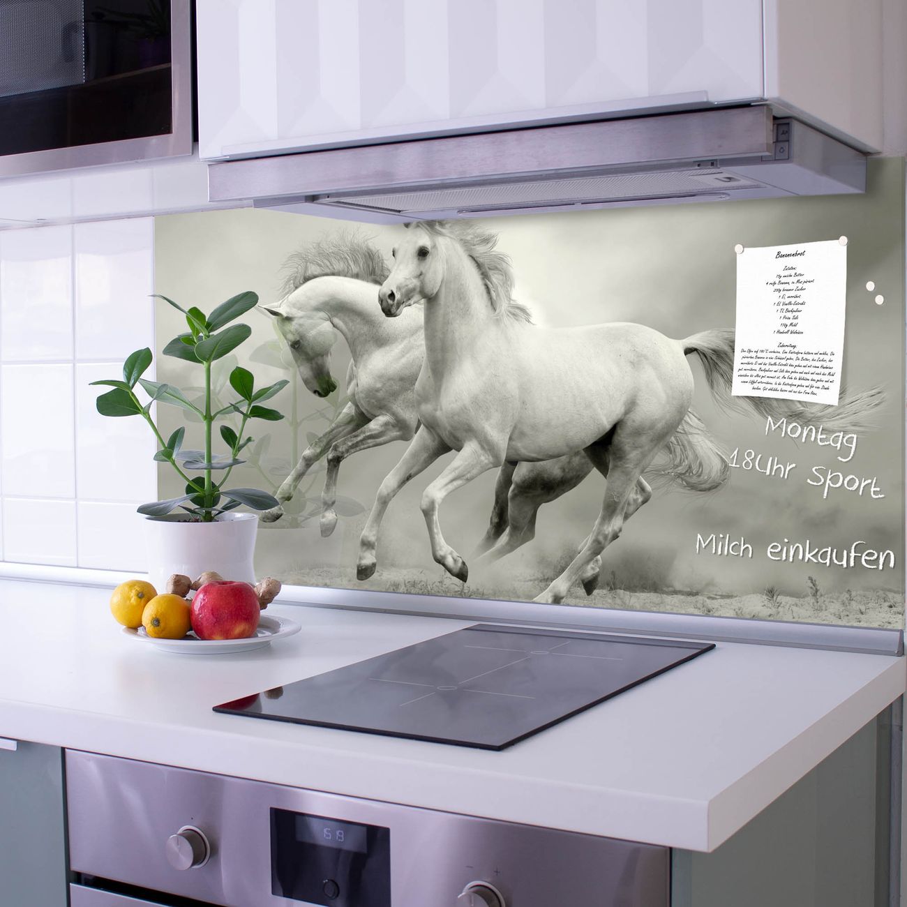 Die banjado Glas Küchenrückwand in verschiedenen Größen mit Motiv Wilde Pferde SW schützt Ihre Küchenfliesen vor Fettspritzern oder Wasserflecken. Der Spritzschutz ist gleichzeitig magnetisch und hält Ihre Rezepte oder Einkaufslisten. 4 Neodym-Magnete und 1 Kreidestift liegen bereits bei. Leuchtende Motive und hochwertiges Material machen den Spritzschutz zum Designobjekt. Das dekorative Glasbild gibt Ihrer Küche ein individuelles Erscheinungsbild. Abgerundete Kanten und Sicherheitsglas sorgen für einen sicheren Einsatz.