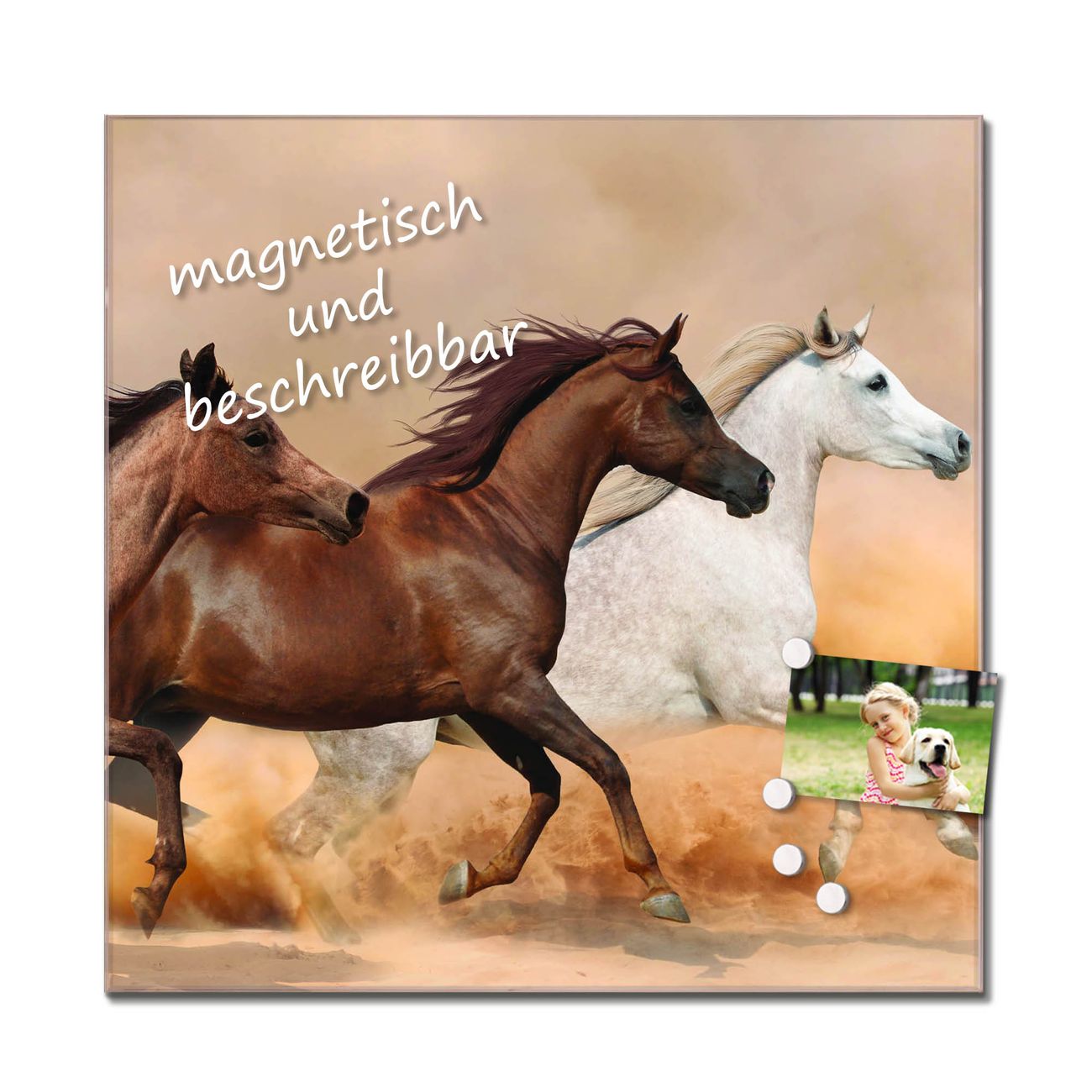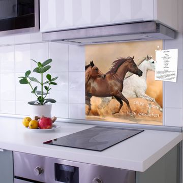 Die banjado Glas Küchenrückwand in verschiedenen Größen mit Motiv Wilde Pferde schützt Ihre Küchenfliesen vor Fettspritzern oder Wasserflecken. Der Spritzschutz ist gleichzeitig magnetisch und hält Ihre Rezepte oder Einkaufslisten. 4 Neodym-Magnete und 1 Kreidestift liegen bereits bei. Leuchtende Motive und hochwertiges Material machen den Spritzschutz zum Designobjekt. Das dekorative Glasbild gibt Ihrer Küche ein individuelles Erscheinungsbild. Abgerundete Kanten und Sicherheitsglas sorgen für einen sicheren Einsatz.