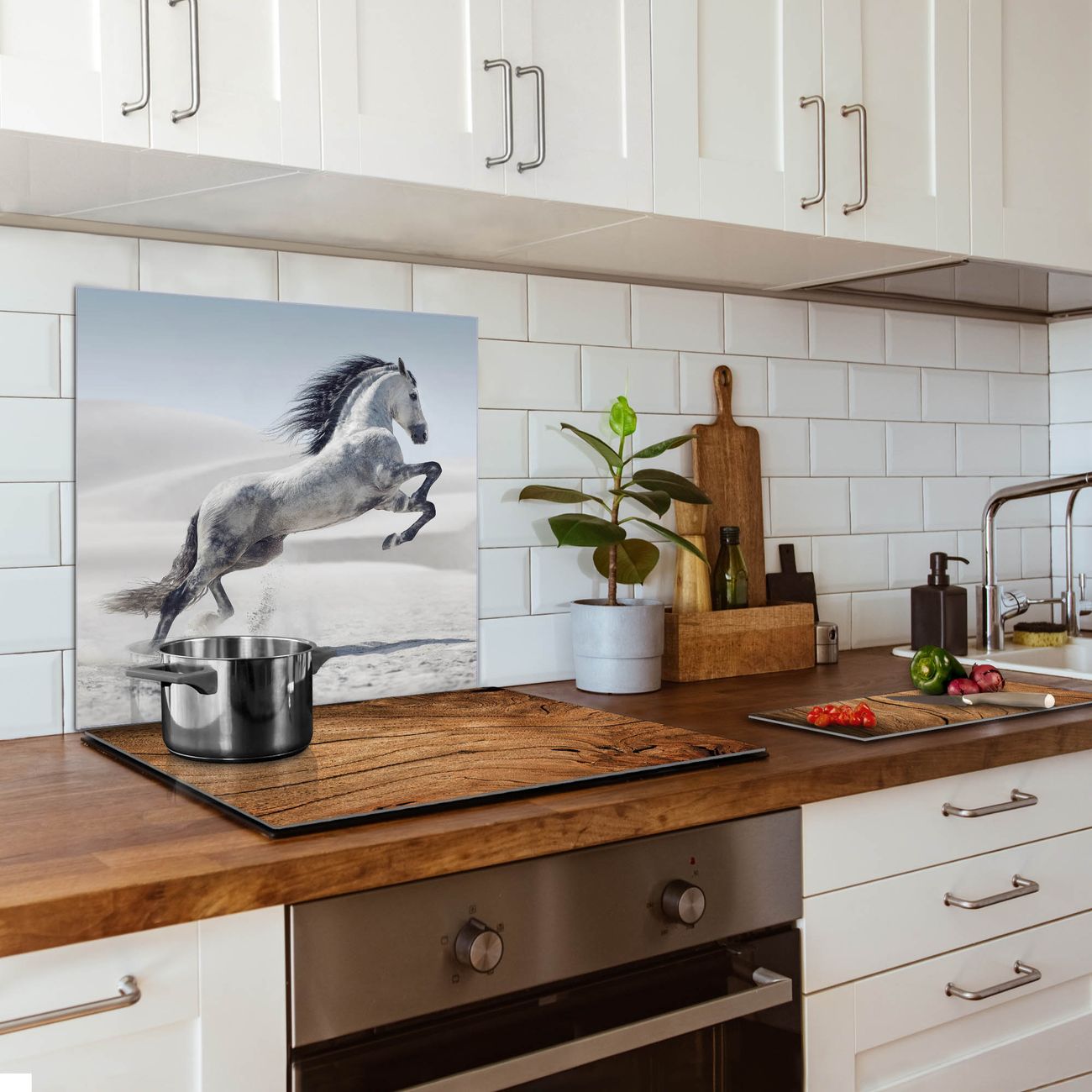 Die banjado Glas Küchenrückwand in verschiedenen Größen mit Motiv Wildes Pferd schützt Ihre Küchenfliesen vor Fettspritzern oder Wasserflecken. Der Spritzschutz ist gleichzeitig magnetisch und hält Ihre Rezepte oder Einkaufslisten. 4 Neodym-Magnete und 1 Kreidestift liegen bereits bei. Leuchtende Motive und hochwertiges Material machen den Spritzschutz zum Designobjekt. Das dekorative Glasbild gibt Ihrer Küche ein individuelles Erscheinungsbild. Abgerundete Kanten und Sicherheitsglas sorgen für einen sicheren Einsatz.