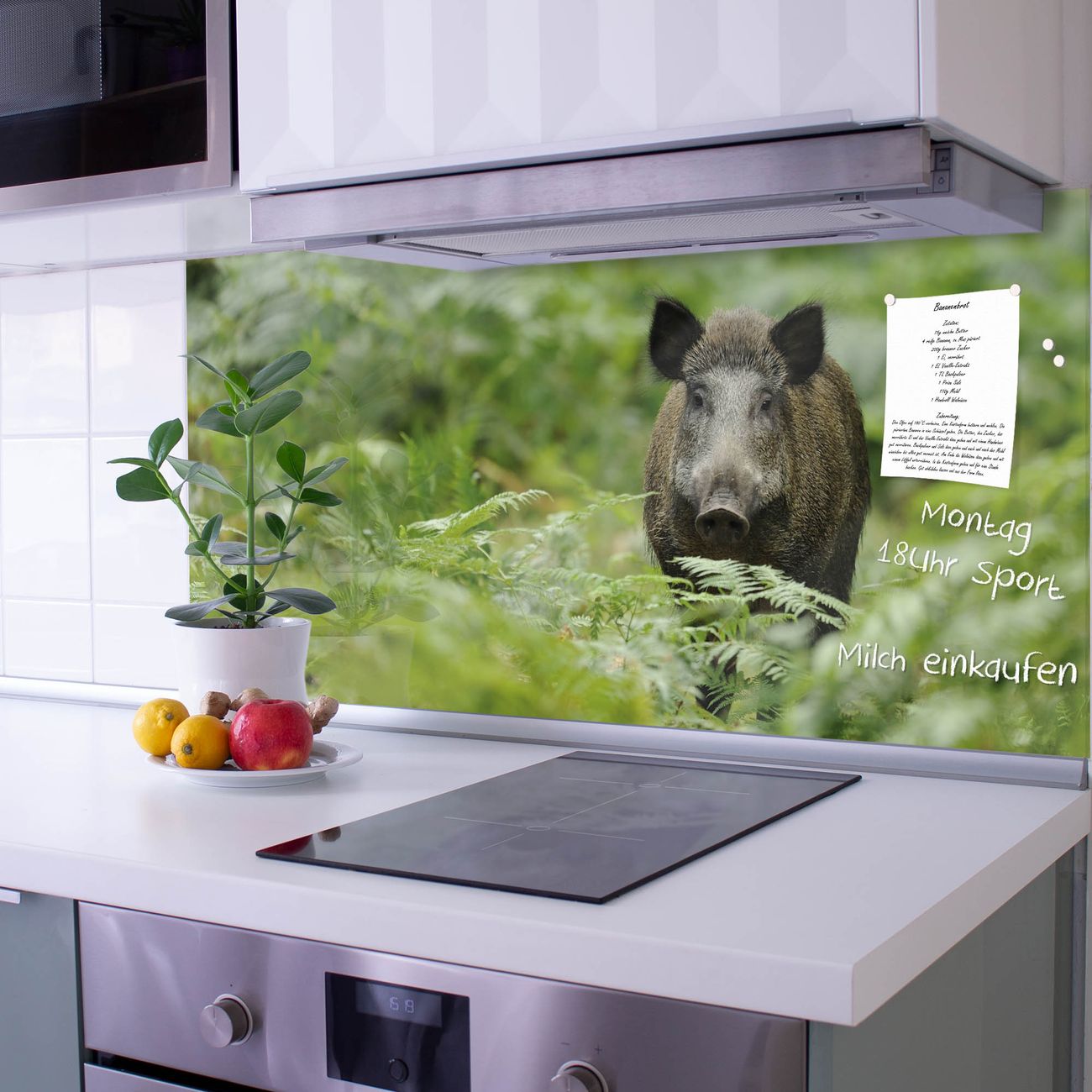 Die banjado Glas Küchenrückwand in verschiedenen Größen mit Motiv Wildschwein schützt Ihre Küchenfliesen vor Fettspritzern oder Wasserflecken. Der Spritzschutz ist gleichzeitig magnetisch und hält Ihre Rezepte oder Einkaufslisten. 4 Neodym-Magnete und 1 Kreidestift liegen bereits bei. Leuchtende Motive und hochwertiges Material machen den Spritzschutz zum Designobjekt. Das dekorative Glasbild gibt Ihrer Küche ein individuelles Erscheinungsbild. Abgerundete Kanten und Sicherheitsglas sorgen für einen sicheren Einsatz.