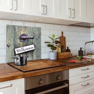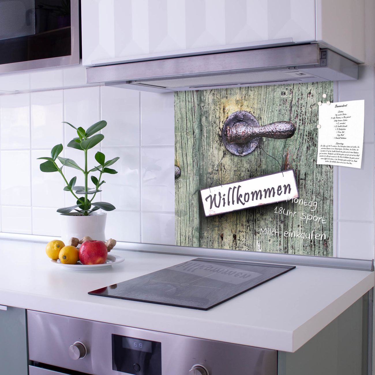 Die banjado Glas Küchenrückwand in verschiedenen Größen mit Motiv Willkommen schützt Ihre Küchenfliesen vor Fettspritzern oder Wasserflecken. Der Spritzschutz ist gleichzeitig magnetisch und hält Ihre Rezepte oder Einkaufslisten. 4 Neodym-Magnete und 1 Kreidestift liegen bereits bei. Leuchtende Motive und hochwertiges Material machen den Spritzschutz zum Designobjekt. Das dekorative Glasbild gibt Ihrer Küche ein individuelles Erscheinungsbild. Abgerundete Kanten und Sicherheitsglas sorgen für einen sicheren Einsatz.