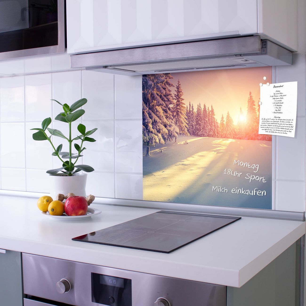 Die Küchenrückwand ist eine elegante Mehrzwecktafel: als Spritzschutz hinter Herd oder Waschbecken, hält Notizen wie ein Memoboard, ist beschreibbar mit Kreidestiften oder Whiteboard-Markern, sieht umwerfend als Glasbild aus. Sie besteht aus gehärtetem Glas, die Rückwand aus einem magnetischen Stahlblech. Durch die superflache Bauweise haben Sie die Wahl aus einer Vielzahl von Befestigungsmöglichkeiten. Sie können die Küchenrückwand mit einem Montagekleber superflach an die Wand kleben oder Sie wählen eines unserer passenden Befestigungssets, welches eine optimale Montage garantiert. Die Küchenrückwand besteht aus zertifiziertem Sicherheitsglas. Durch die mitgelieferten 4 Neodym-Magnete ist Ihre Glas Magnettafel sofort einsatzbereit.